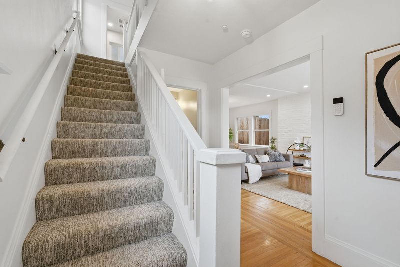 Charming 1923 Millsmont home blending classic character with thoughtful modern upgrades. Set back from the street for added privacy, this 3-bedroom 1.5-bath home features a bright living room with a bay window, a built-in window seat, hardwood floors, an exposed brick fireplace, and original glass-front built-ins. The open living and dining areas create an easy flow for everyday living and entertaining. Front and backyard spaces offer low-maintenance turf, irrigation, and mature fruit trees including limes and blood oranges. Recent upgrades include a newer roof (approx. 2.5 years), new heat pump system, efficient solar with battery backup, and EV charging outlet. Convenient access to NX3 AC Transit to SF, Highway 580, local amenities, and Joaquin Miller Park. A wonderful blend of vintage charm and modern efficiency in desirable Millsmont.
