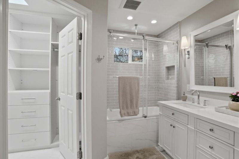 Beautifully updated Willow Glen property is ideally located near the scenic Los Gatos Creek Trail, this exceptional one-story home blends modern upgrades with effortless indoor-outdoor living. The open floor plan features a light-filled living and dining area with warm hardwood floors and sliding doors that open to a covered patio and beautifully landscaped backyard with stamped concrete, arbor, gazebo, and lush pathways. The updated kitchen offers granite countertops, wood cabinetry, stainless steel appliances by JennAir, and a generous breakfast bar. Bedrooms include hardwood floors, ceiling fans, and recessed lighting. Remodeled baths highlight a luxurious primary suite addition with marble floors, jacuzzi tub, skylight, custom walk-in closet, and high-end finishes. Approximately $300,000 in improvements include new air conditioning, dual-pane windows and doors, updated landscaping and hardscape, designer window coverings with remote shades, fresh interior and exterior paint, ADT security system, and hardwired smoke alarms. The fully finished two-car garage is currently styled as a high-end, climate-controlled home gym with custom finishes and can easily be converted back if desired. A rare opportunity offering comfort, flexibility, and prime Silicon Valley convenience.