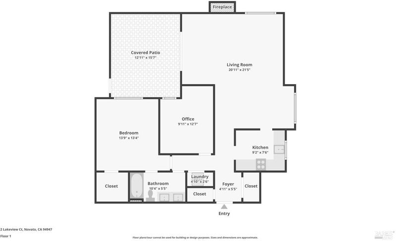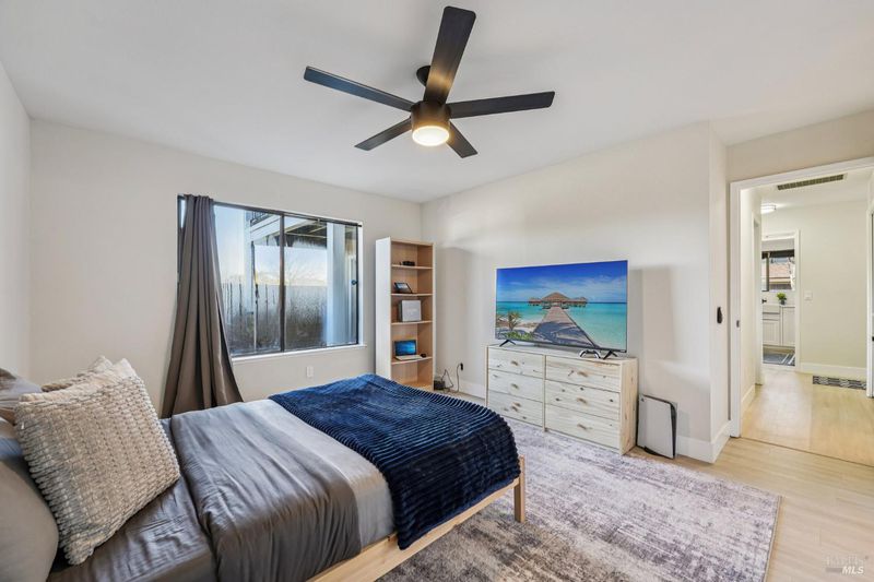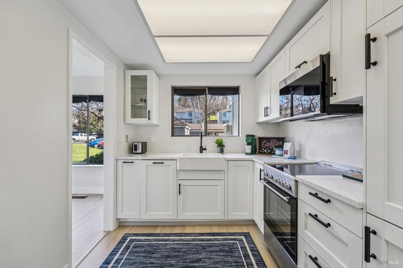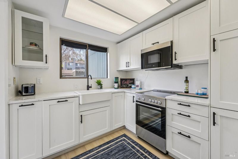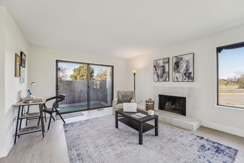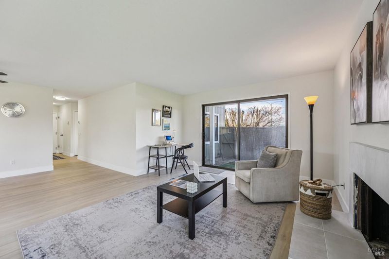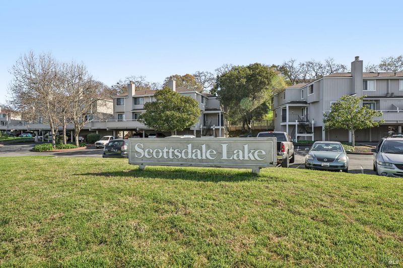 Welcome to effortless living in the sought-after Scottsdale Lake community of South Novato. This desirable ground-level end unit offers rare privacy with just one shared wall and no stairs. Bright and spacious, the open-concept layout is filled with natural light and offers the flexibility to work comfortably from home or enjoy it as your local pied-a-terre. Luxury vinyl plank flooring, a cozy wood-burning fireplace, a dedicated dining area, and a sliding glass door that opens to a private patio and sodded yard area to create an inviting setting for relaxing, entertaining, or playtime with your pet. The newly remodeled kitchen features Quartz countertops, a deep farmhouse sink, sleek modern finishes, and a custom-paneled, fully integrated dishwasher and refrigerator/freezer for a seamless, designer look. The spacious primary bedroom includes a generous walk-in closet, while the updated bathroom offers dual sinks and a custom-tiled shower for a spa-inspired feel. Additional highlights include full-size in-unit laundry, a coat closet, extra storage, and one assigned, covered parking space. Tax records reflect a one-bedroom layout; however, a flex room off the living area adds valuable versatile space that can function as a home office, fitness room, creative area, or as a potential second bedroom. Residents enjoy resort-style amenities including a pool, spa, and tennis courts, all just minutes from Highways 101 and 37, Vintage Oaks Shopping Center, nearby parks, and scenic trails. Move-in ready and ideally positioned, this is a compelling opportunity to own in one of Novato's most convenient communities.