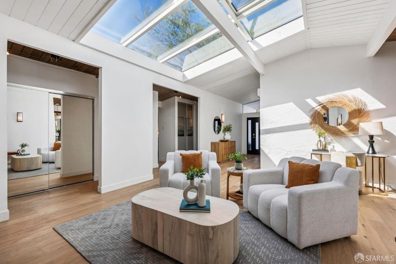 Designed for effortless indoor-outdoor living, this beautifully remodeled Eichler feels seamlessly connected to its surroundings. Offering 4 bedrooms and 2 baths, the home opens to a spacious patio and a private backyard with citrus trees, raised garden beds, and a gated entrance directly to Killdeer Park, making the park a true extension of the home. Inside, iconic floor to ceiling windows and expansive skylights fill the living spaces with natural light, while a warm wood burning fireplace adds timeless character. The chef's kitchen features quartz countertops, stainless steel appliances, and custom cabinetry, blending modern function with classic Eichler design. Additional highlights include new white oak hardwood floors, Fully owned solar panels (NEM2 valid for 18 more years), a Level 2 EV charger, and upgraded electrical. Ideally located walking distance from award-winning schools, scenic trails, coffee shops, dining, and shopping, with easy access to Caltrain and Highways 92, 101, and 280.