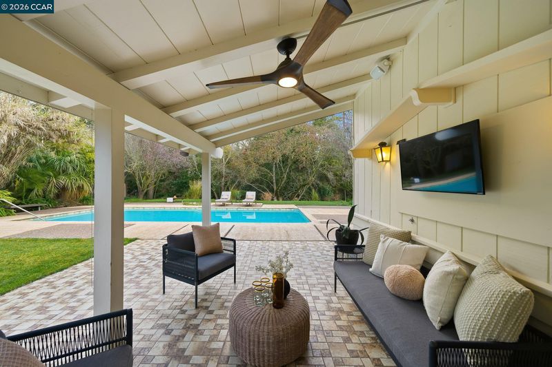 Iconic mid-century home, remodeled in 2015 into an effortlessly cool and quintessentially California retreat. This one-of-a-kind masterpiece sits on a verdant, half-acre lot in the heart of Lafayette’s prestigious Happy Valley and offers privacy, great design, and seamless indoor-outdoor living. The flexible floorplan includes 4 bedrooms, 4 baths, a dedicated office, and separate living, dining and bonus rooms. High-end custom finishes elevate every space with top-of-the-line appliances (Thermador, Bosch and Sub-Zero), Fleetwood windows and doors, radiant heating, IPE decking, and an eco-conscious grey water recycling system. Designer, epoxy resin flooring creates a luminous and seamless architectural finish that is both durable and chic. Custom cabinetry with sleek honed slate countertops adds depth and texture to the kitchen and bathrooms. Every detail has been carefully selected to celebrate the home’s mid-century roots while embracing modern luxury and sustainability. The lush, private backyard has an inground pool with separate hot tub and is ideal for entertaining. This exceptional property is all within easy reach Lafayette’s vibrant downtown, convenient commute routes, the Lafayette Reservoir, Oakwood Athletic Club and top-rated schools.