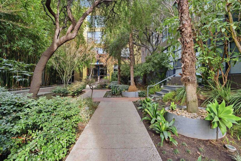 Here is your opportunity to own a rarely available west-facing, ground-floor loft in the award-winning Emeryville Warehouse Lofts, designed by acclaimed architect David Baker and ideally located in the heart of Emeryville. Offering one of the larger units in the building at approximately 1,307 square feet of living space, this spacious residence showcases soaring warehouse-style ceilings, large windows with blackout shutters, and custom built-in bookshelves that add both character and functionality. Completely renovated in 1999 from one of the original Emeryville artists warehouses, the home features rare interior volume and an open layout well-suited for comfortable everyday living, working from home, or entertaining. The flexible floor plan includes a lofted area ideal for a home office, guest space, or creative use, along with in-unit laundry and a walk-in closet for added convenience. Ground-floor access provides ease of entry while maintaining privacy and the grand scale of a true warehouse loft. This architecturally significant building welcomes residents through a serene landscaped courtyard with a Zen garden and 5-story water feature, offering secure entry, dedicated parking with interior access, and a shared rooftop deck showcasing sweeping city and Bay views. E