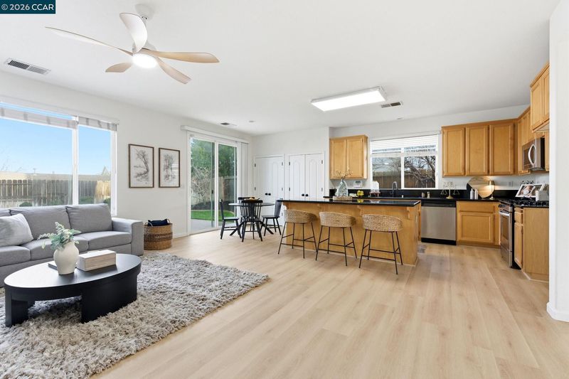 Welcome home to this spacious single-story gem in Pittsburg’s sought-after Highlands Ranch neighborhood! Built in 2004 and thoughtfully updated by the original owners, this 4-bedroom, 2-bath home offers over 2,200 sq ft designed for comfortable everyday living. Brand new luxury vinyl plank flooring flows throughout the bright open layout featuring large living and family rooms and a formal dining space for gatherings. The heart of the home is the welcoming kitchen with island breakfast bar, stainless steel appliances, gas range with built-in microwave, two pantry closets, and a sunny dining nook overlooking the backyard. The primary suite is a relaxing retreat with backyard access, dual vanities, makeup station, soaking tub, separate shower, and walk-in closet. Three additional bedrooms and a dual-vanity hall bath make mornings easy for busy households. Enjoy indoor laundry, a spacious 3-car garage, and a backyard patio ready for BBQs and playtime. Conveniently located near Pittsburg BART, Hwy 4, and Kirker Pass for commuters. A wonderful place to call home!