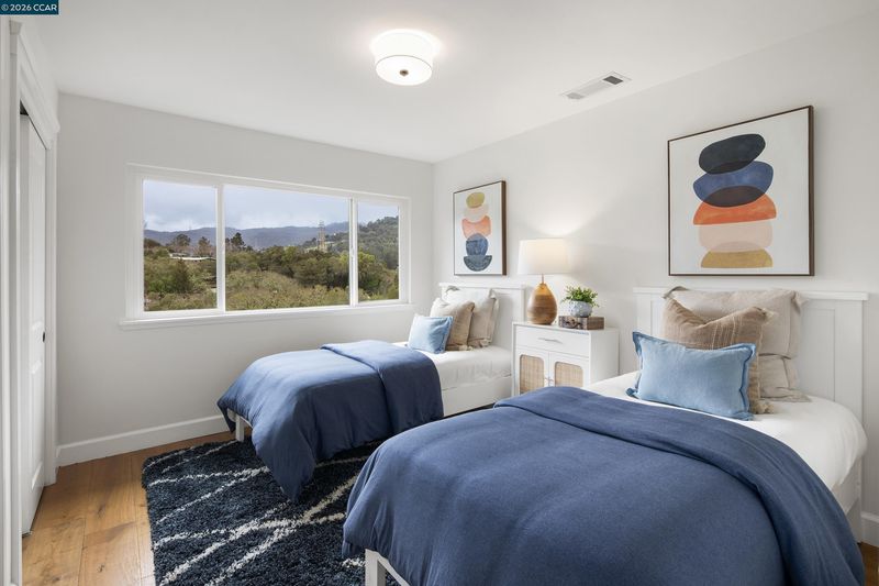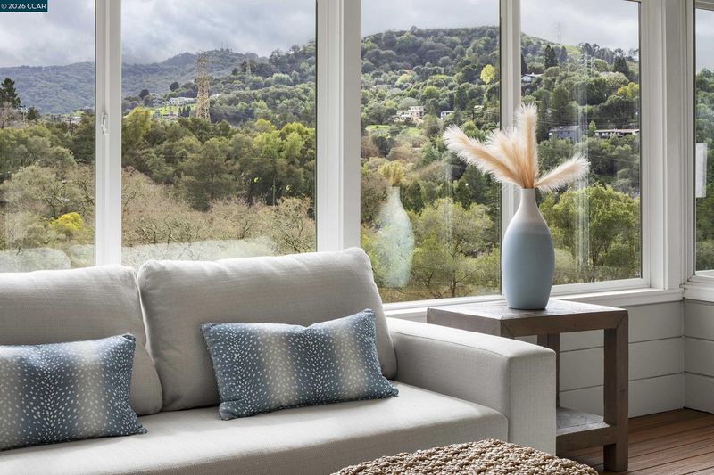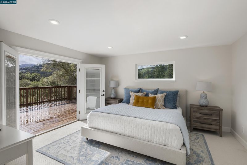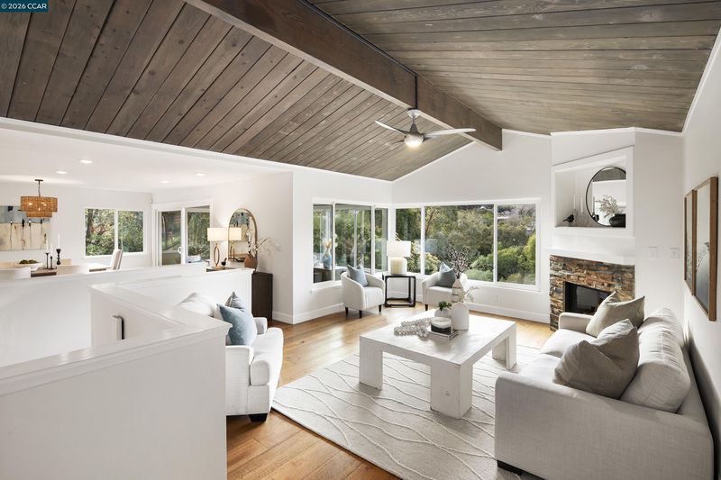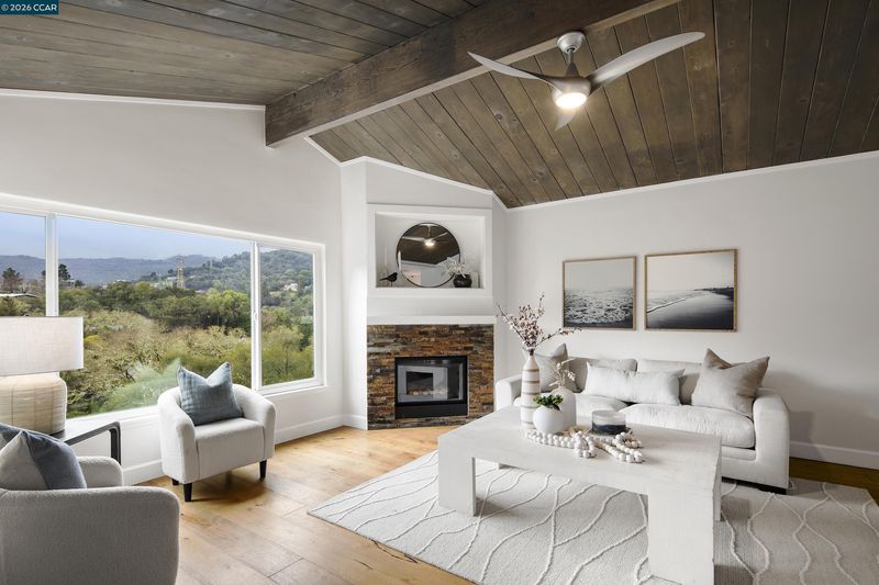 Spectacular views distinguish this inviting 4-bedroom, 4-bath home in the serene Glorietta neighborhood, just a brief two-block stroll to downtown Orinda, including Peet’s Coffee, the historic movie theater, shops, and restaurants. Upon entering the level-entry home, one’s attention is drawn to large windows showcasing beautiful hillside views. The open-concept living and dining areas feature a beamed ceiling, elegant flooring, and a gas fireplace, with an enclosed deck and sunroom for year-round enjoyment. The kitchen flows to the dining area and marble breakfast bar. The main level offers three bedrooms and two full baths, including one with an en-suite bathroom. The lower level features the primary suite with French doors to a newly stained deck, an en-suite bath, and a walk-in closet, plus an additional full bath, flexible living space, and a well-appointed laundry room.Terraced outdoor spaces include an expansive deck, BBQ pergola, bocce ball court, and fruit trees. A substantial driveway and freshly painted garage provide ample parking and storage.This home exemplifies the best of Orinda living—peaceful, scenic, and just steps from town.