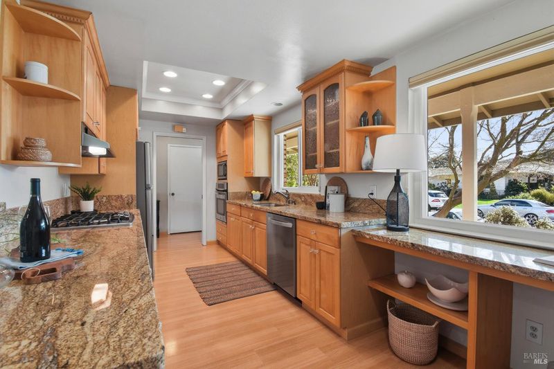 Impeccable Single-Level Home in the Vibrant Oakmont Community. This beautifully maintained single-level home offers 2bd and 2ba plus den 1,496+/- sqft, set on a generous 6,290+/-sqft lot. The bright galley kitchen features abundant cabinetry, stainless steel appliances, and ample counter space perfectly designed for both everyday comfort and effortless entertainment. The light-filled living room completed by a fireplace and highlighted by a generous, picturesque window that overlooks the lush, manicured backyard. A versatile den with built-in cabinetry and laundry closet provides flexible space perfect for office, library, or guest retreat. The spacious primary bedroom includes a convenient en-suite bathroom. Step outside to enjoy the beautifully landscaped backyard with mature trees and vibrant greenery inviting space for relaxing or gatherings. Additional features include air conditioning, and two-car garage. Residents of Oakmont enjoy access to exceptional amenities, including golf, tennis courts, swimming pools, scenic walking trails, and more offering an active and engaging lifestyle in a picturesque setting.