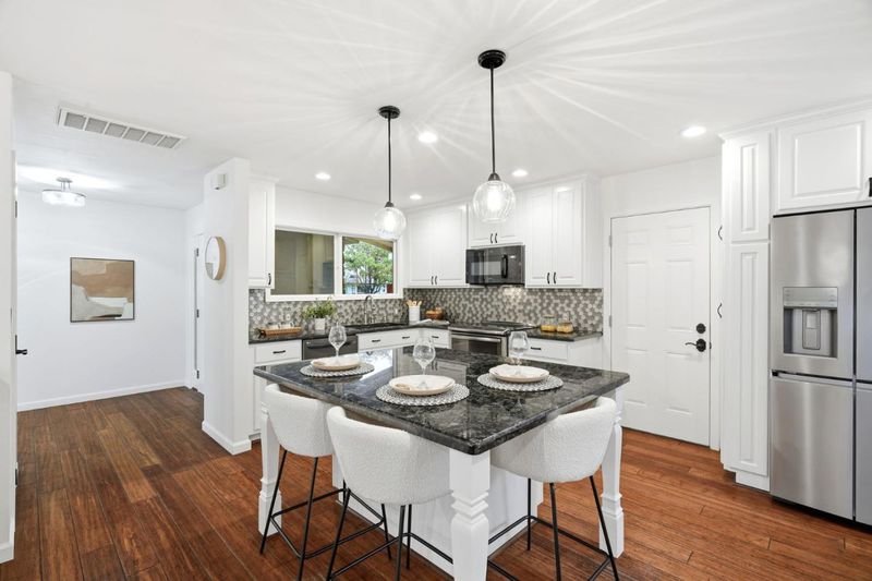Beautifully refreshed and ideally located, this 3-bedroom, 2-bath residence offers 1,624 square feet of thoughtfully designed living space on a 6,100 square foot lot in the sought-after Ortega neighborhood of Sunnyvale, known for its quiet streets, access to Ortega Park, and proximity to top-rated schools and community amenities. Recent updates include fresh interior paint, updated lighting fixtures, and professional landscaping, creating a bright, move-in-ready presentation. Kitchen offers granite counter tops and a large eat-in kitchen island. The functional and flexible floor plan features comfortable living and dining spaces with excellent natural light, ideal for both everyday living and entertaining. Located near major Silicon Valley tech campuses, this property offers exceptional convenience to commute routes, shopping, dining, and everyday living. This property is equipped with energy-efficient features such as owned solar panels and a Nest thermostat, ensuring comfort and sustainability. Central AC provides cooling, while central forced air heating ensures warmth during cooler months. Call to schedule a tour today!