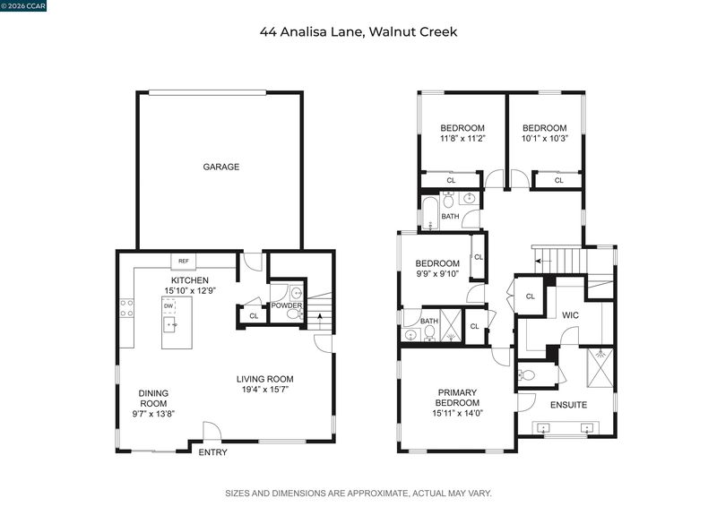 Welcome to 44 Analisa Lane, a contemporary townhome in the heart of Walnut Creek offering the perfect blend of style, convenience, and comfort. Built in 2019, this spacious residence features 4 bedrooms plus a versatile office/den and 3.5 bathrooms across nearly 1,950 square feet of thoughtfully designed living space. The open-concept main level is ideal for entertaining, with a modern chef’s kitchen showcasing stainless steel appliances, a large center island, and seamless flow into the bright living and dining areas. Upstairs, the generous primary suite includes a spa-inspired bathroom and walk-in closet, while additional bedrooms provide ample space for family, guests, or a home office. A private attached two-car garage, in-unit laundry hookups, and energy-efficient systems add to the home’s everyday ease. Situated in a boutique community of just 11 homes, residents enjoy low-maintenance living with HOA-covered exterior upkeep. The location is unmatched—just moments from Walnut Creek’s vibrant downtown, BART, top-rated schools, trails, and endless dining and shopping. Perfectly balancing modern design with walkable lifestyle amenities, this home offers a rare opportunity to own a turnkey property in one of the Bay Area’s most desirable communities.