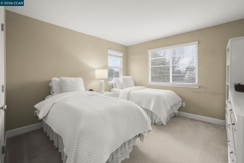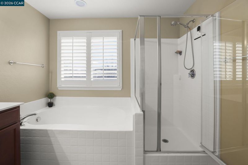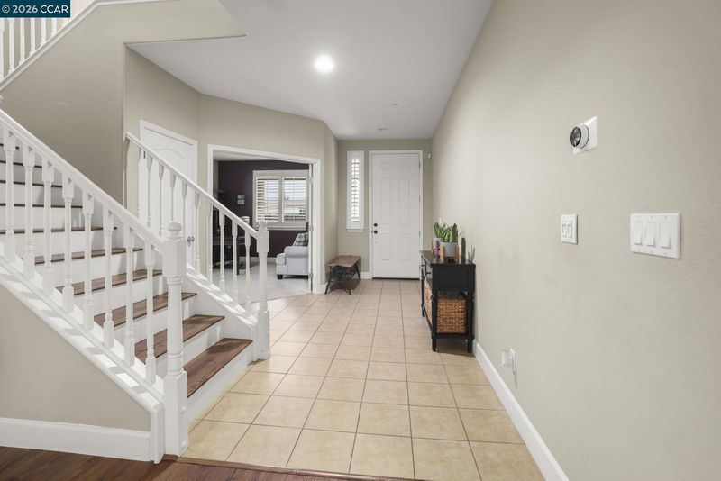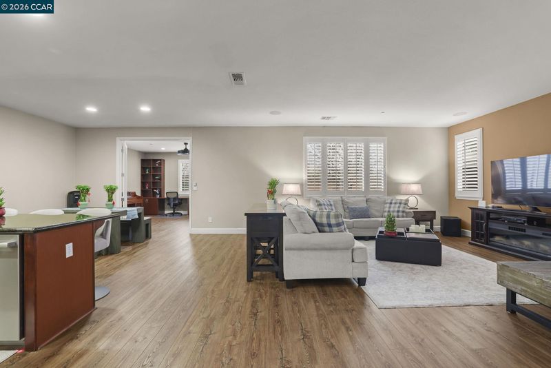Welcome to this beautifully designed, large open floor plan home that blends both comfort and functionality. The expansive kitchen features a large island, ample cabinetry, pantry storage, stainless steel appliances, new Bosch dishwasher and slab granite countertops. The downstairs bedroom is perfect for guests or extended family. Durable luxury vinyl flooring, custom wood plantation shutters throughout and a built-in speaker sound system for elevated entertainment. Large added bonus room (completed with permits) with custom shelving, storage cabinets, media hookups and French double glass doors. The home also has an office/den with upgraded French double glass doors and functional media connections. 2 large walk-in closets located in the primary bedroom and each upstairs bedroom has its own designated walk-in closet! Energy-efficient owned solar system with upgraded solar panel bird guard protection, perfect for durability and long term utility savings. Step outside to a large, low maintenance private backyard complete with a charming pergola-perfect for pets, outdoor dining, relaxing and hosting gatherings. Conveniently close to Marsh Creek Elementary School and parks and just minutes from shopping, restaurants and retail. Excellent location within the community with no HOA!
