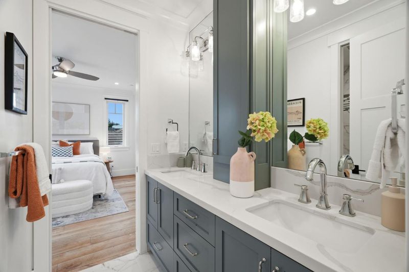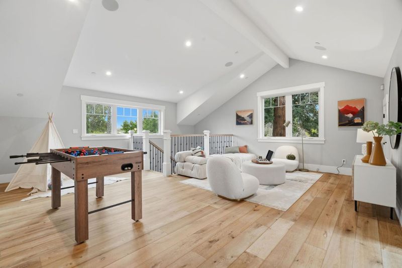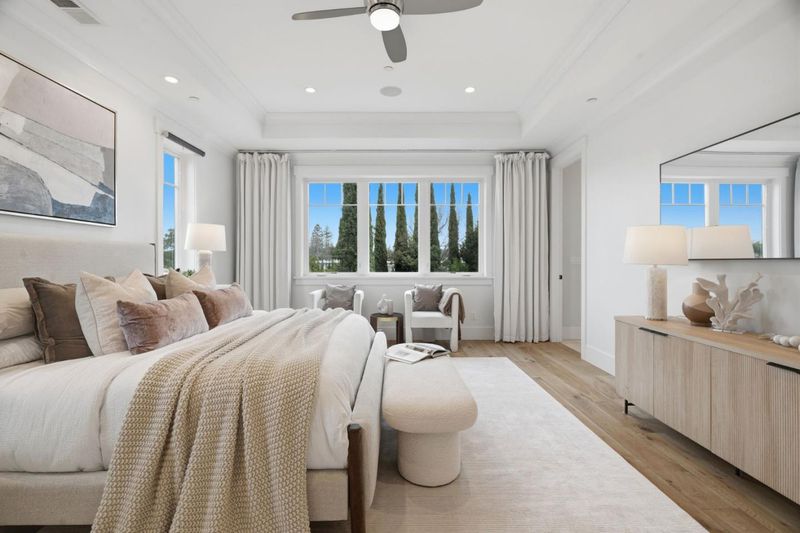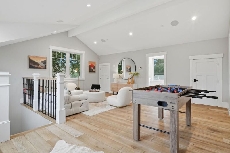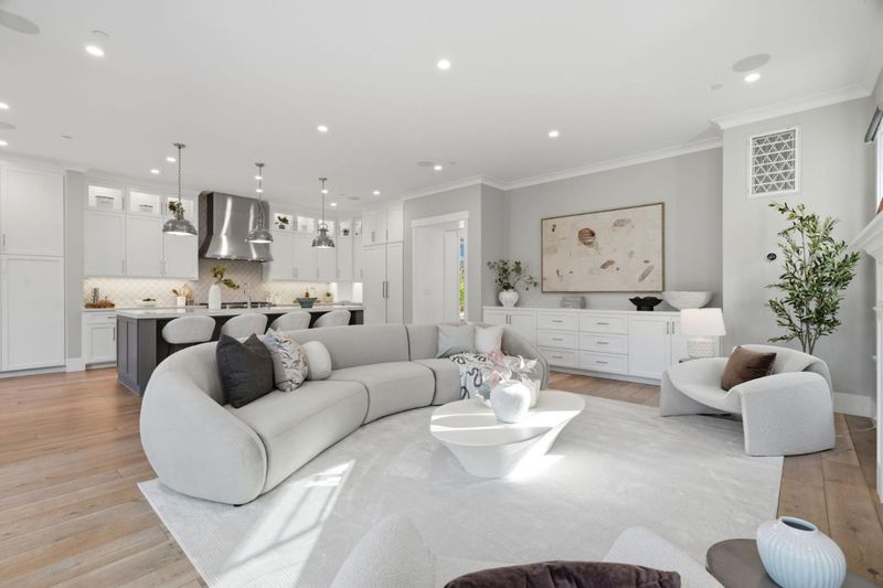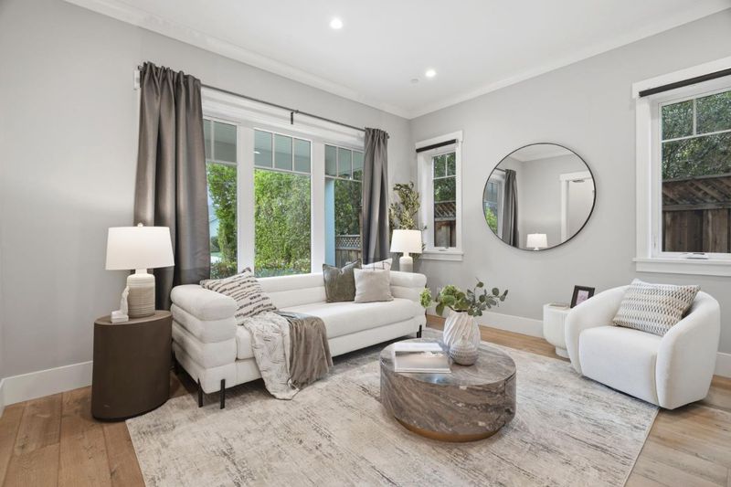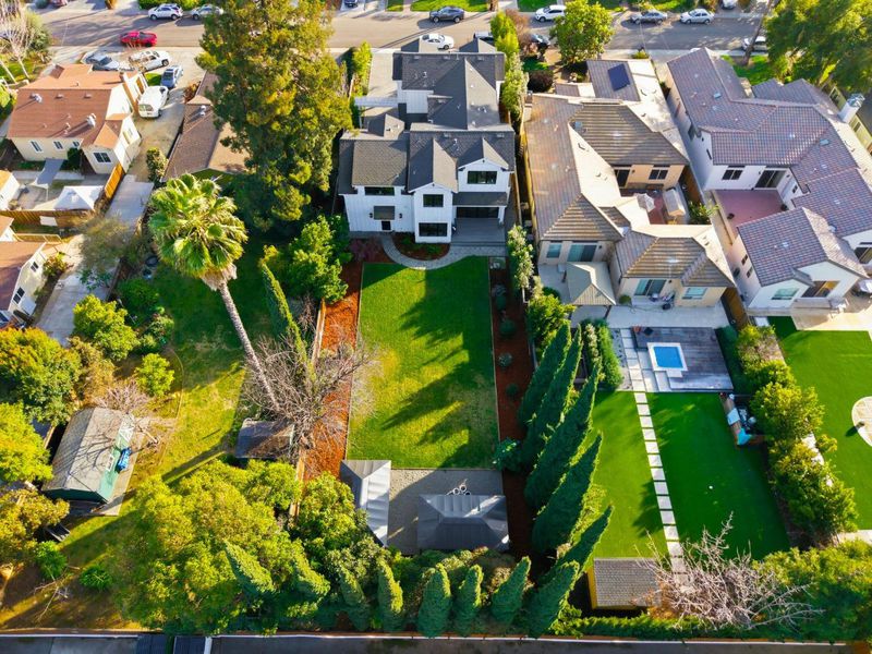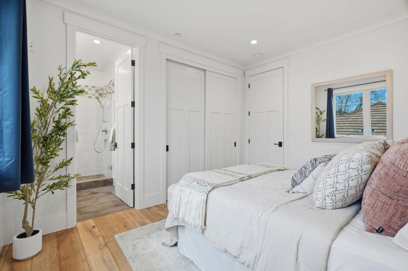 Stunning home built in 2019; almost 4400 sq.ft., open & bright, tall ceiling throughout. Over 13,000 sq.ft. of one of the deepest/largest lots in Willow Glen. 5 bedrooms (formal living room with barn doors can be used as office or 6th room) including a guest bedroom with en-suite bath on the ground level. Formal dining room with double sliding glass doors to side porch + wine cellar with glass wall. Great room with double sliding glass doors to extra-deep rear yard with lawn, deck & patios. Open chef's kitchen features island with counter seating, marble-style quartz counters; high-end Thermador appliances including built-in refrigerator, gas range with 6 burners + 2 ovens; banquette-style casual dining. Primary suite has walk-in closet; en-suite spa-like bath with separate vanities, freestanding tub, frameless glass shower, private commode room. Additional bedroom with en suite bath, plus 2 bedrooms sharing Jack-and-Jill bath. Accessed from a rear staircase or hidden bookshelf door from primary suite closet, is an extra-large flexible-use room with 2 walk-in closets, cathedral ceiling, and half-bath. Powder room; mudroom; laundry room with sink, washer & dryer; attached 2-car garage wired for EV charging; tankless water heater; multi-zone air conditioning. Close to Downtown WG.