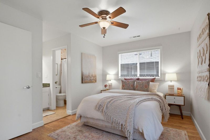 Impeccably maintained, move-in ready single-level home is filled with warm touches & thoughtful amenities. It is a perfect retreat & wonderful opportunity to own in charming Willow Glen. The living room, featuring recessed lights, is ideal for quiet evenings & entertaining. Experience a bright gathering space in the updated kitchen, complete with freshly painted cabinets, granite counters w/stone backsplash, & stainless steel appliances, including a brand-NEW microwave & gas stove. The serene primary & 2nd bdrms each feature French doors opening directly to the rear yard. The primary ensuite boasts a large stone walk-in shower & double vanity. Step outside to a private garden sanctuary featuring a stamped concrete patio w/ a remote-controlled awning & a pergola w/ decorative light strings. The grounds are accented by mature trees including citrus, raised garden beds, lawn areas, and timed irrigation. Room for home expansion. Many improvements provide peace of mind: Fresh int paint, OWNED solar (2019), furnace/AC (2020), 40-amp 240V EV charger &125 AMP elect panel (2019) & a 2017 composition roof. Enjoy walking to the "downtown" Willow Glen shops, restaurants & community events + short distance to downtown SJ & SJ airport. Excellent commute access to Highways 87 & 280. Must see!
