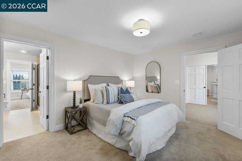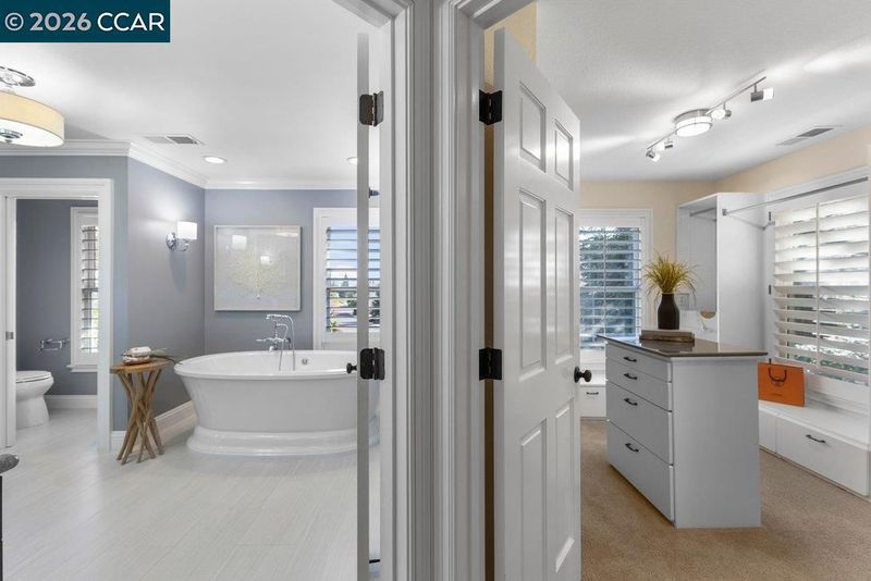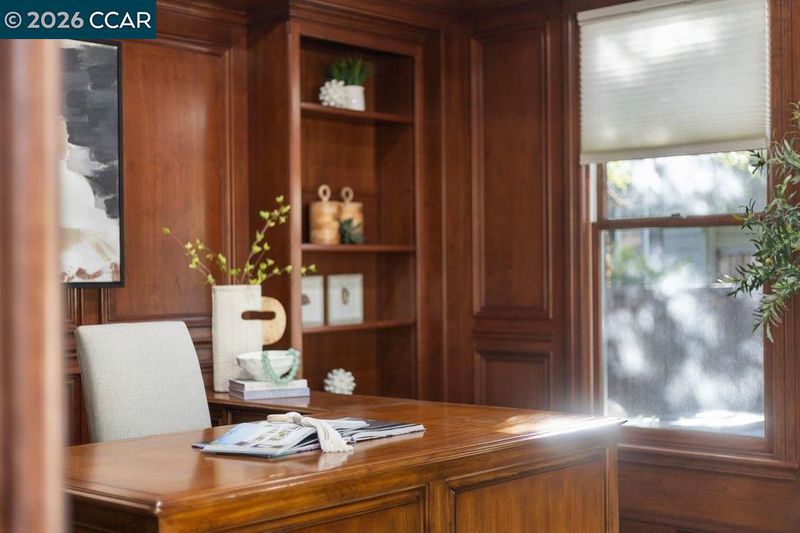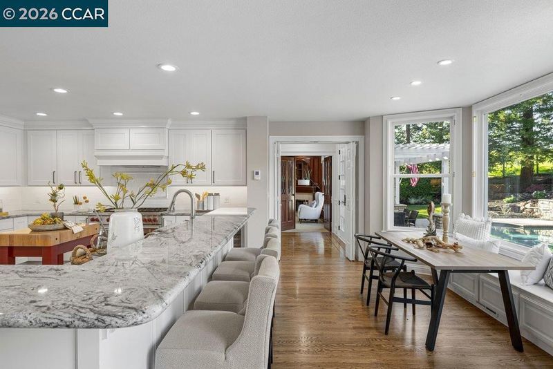 Elegant custom home with over 4,000 sqft situated on a .41 acre lot backing to private open space with serene views. Stately curb appeal in a prime court location! Four bedrooms PLUS a stunning executive-style office, wainscoting, four fireplaces, and long driveway with ample parking for guests. Thoughtful floor plan with a beautiful open kitchen–family room concept. The gourmet kitchen features hardwood floors, custom cabinetry, a WOLF range with red knobs, SUB-ZERO refrigeration, and bar seating overlooking the sitting area and family room, with glass doors that flow to the pool. Formal dining room and living room with French doors further enhance the indoor/outdoor lifestyle. Spacious primary bedroom suite with a fireplace, a large walk-in closet (with built-ins), and a beautifully updated bathroom with a soaking tub, a tiled shower, and a custom dual-sink vanity. BONUS-fourth bedroom is a suite of its own! Oversized with high ceilings, built-in cabinets, a large closet, and its own balcony overlooking the backyard and a full bath- ideal as a guest suite, office, or playroom. Large 3-car garage with lots of storage and a stylish black and white checkered flooring. Large pool and spa, generous patio areas for dining & lounging, plus a grassy area- all perfect for entertaining!