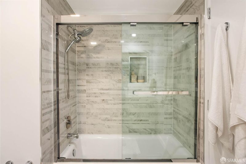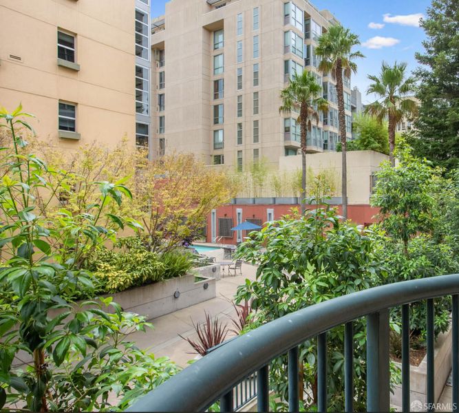 Beautifully updated condo at Pacific Place. This unit boasts abundant natural light and features imported wide-plank wood flooring on the living area. The renovated kitchen is equipped with stainless steel appliances, and the open floor plan includes a primary bedroom with an en-suite bathroom and spacious double closets. The split-bedroom layout, complemented by two remodeled full bathrooms, offers flexibility for guests, roommates, or a dedicated home office. For added convenience, the unit also includes in-unit laundry and two private balconies overlooking a serene palm courtyard with a heated pool and spa.Pacific Place provides an array of amenities, including two lobbies, 24/7 security, on-site management, a gym, deeded parking, EV charger readiness, and additional storage. The building's prime location near Upper Polk, Fillmore, and Union Street offers easy access to boutique shops, diverse dining options, and charming cafes. With a remarkable Walk/Transit Score of 98, this unit is truly a must-see.