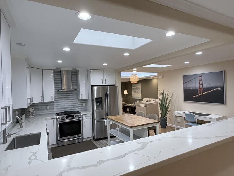 Beautifully renovated single-level home on an expansive 8,734 sq.ft. lot in a peaceful and desirable San Mateo neighborhood. This light-filled home features high ceilings and six skylights that bring in abundant natural light. Recent upgrades include a new roof and brand-new sewer line (2024), energy-efficient lighting, and a sleek open-concept kitchen designed for modern living. Enjoy spacious living and family rooms, a formal dining area, and a stylish bar counter perfect for entertaining. The EV-ready garage adds everyday convenience. The extra-large primary suite boasts a walk-in closet and a spa-inspired en-suite bath with a jetted tub. Two additional oversized bedrooms offer flexible space for family, guests, or a home office. The home features 2.5 tastefully renovated bathrooms with contemporary finishes.Step into the lush, oversized backyard ideal for entertaining, relaxing, or building a potential ADU. Conveniently located close to top rated schools, scenic shoreline parks and waterfront trails, shopping, dining, and vibrant downtown San Mateo.