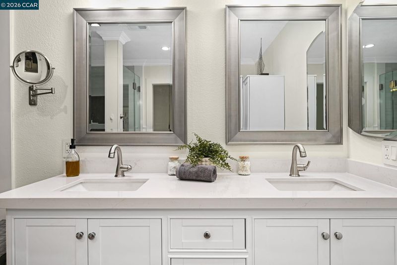 Step inside a welcoming, light-filled home thoughtfully refreshed w/high-quality updates throughout. Perfectly located near downtown Walnut Creek & minutes from Larkey Park, this residence blends everyday comfort w/unbeatable convenience. Entertain or relax effortlessly in open living spaces that flow seamlessly into a modern, updated kitchen featuring quartz countertops, a Wolf 5-burner gas cooktop, Dacor double oven, Bosch ss appliances, and stylish LED & pendant lighting. Luxury vinyl plank flooring, fresh interior paint, new windows, updated lighting, new plantation shutters, & a striking designer white-oak feature wall add warmth and contemporary style throughout. The home also offers a large bonus room/flex space w/ensuite. Bathrooms have been tastefully updated w/quartz finishes & modern fixtures, including a serene primary suite designed as a private retreat. Smart home features include a Smart thermostat & MyQ garage opener, while the private patio w/evening lighting offers a peaceful outdoor escape. A finished oversized 2-car garage w/storage completes this exceptional home. Come see this beautifully updated home in one of Walnut Creek’s most sought-after neighborhoods. This move-in ready gem won’t stay on the market long! HOA includes water, pool/spa & sports court.