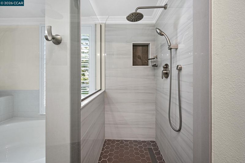 Solid Surface, Stall Shower, Sunken Tub, Tile, Updated Baths, Double Vanity, Window
