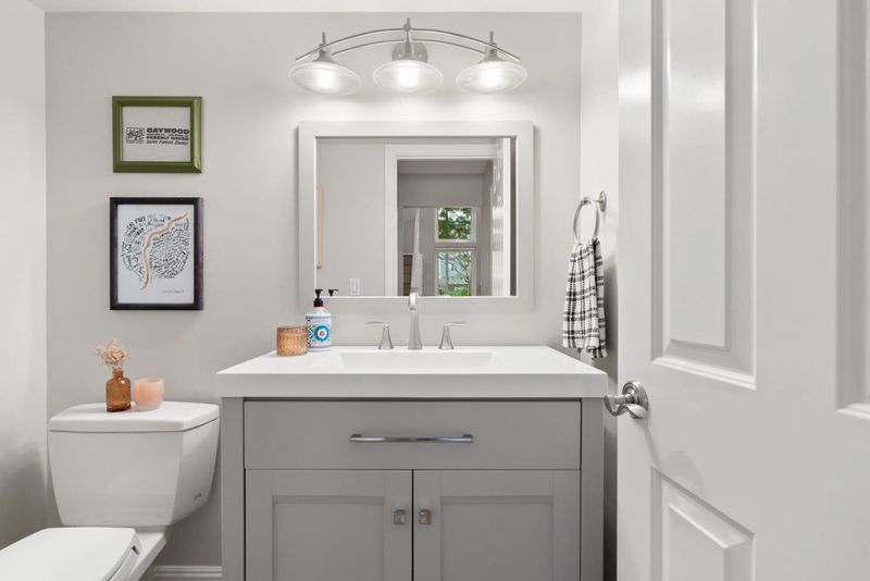 - Double Sinks, Half on Ground Floor, Primary - Stall Shower(s), Shower over Tub - 1, Solid Surface, Tile, Updated Bath