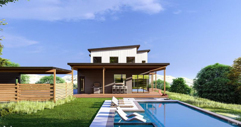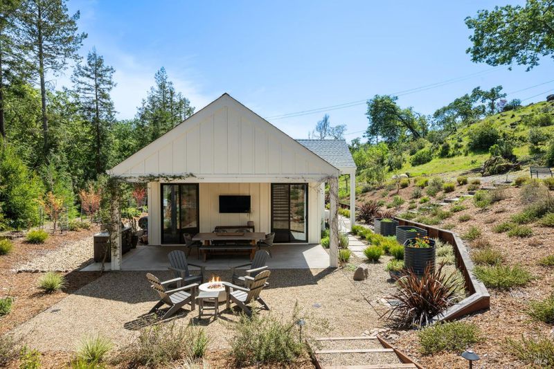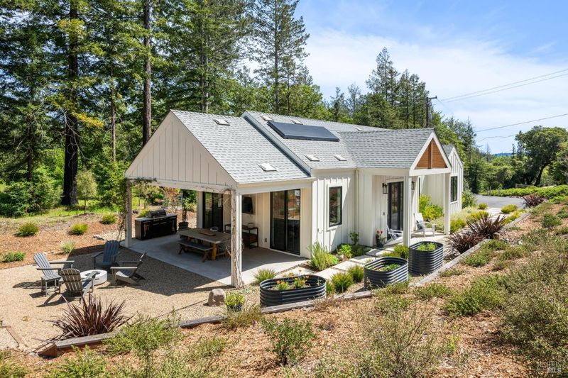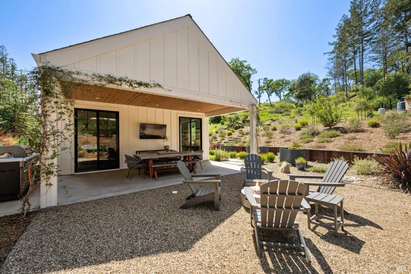 Discover this modern farmhouse retreat with a build-ready building site at the end of a quiet road in Kenwood Valley. This exceptional triple-use property offers a rare opportunity to enjoy immediate living and rental income while planning a future residence. The two-bedroom home is move-in ready and ideally suited to become a future guest house, caretaker's residence, or continued income property. Currently operating as a professionally managed vacation rental, the property offers future income potential with documented performance including over $41K in gross rental revenue since June 2025, strong occupancy trends, an average daily rate near $300, and consistent 5-star guest reviews. Established pricing strategies, and existing marketing infrastructure make it easy for a new owner to continue or expand this revenue stream. Set on more than three acres, the property features a level building pad, productive well, power, and a four-bedroom septic system, along with permit-ready architectural plans for a 2,616 sq. ft. modern residence. A hobby vineyard, along with fruit and olive trees, enhances the tranquil setting while reinforcing the quintessential Wine Country lifestyle. The property offers convenient access to Annadel State Park, Glen Ellen, Kenwood and Sonoma.