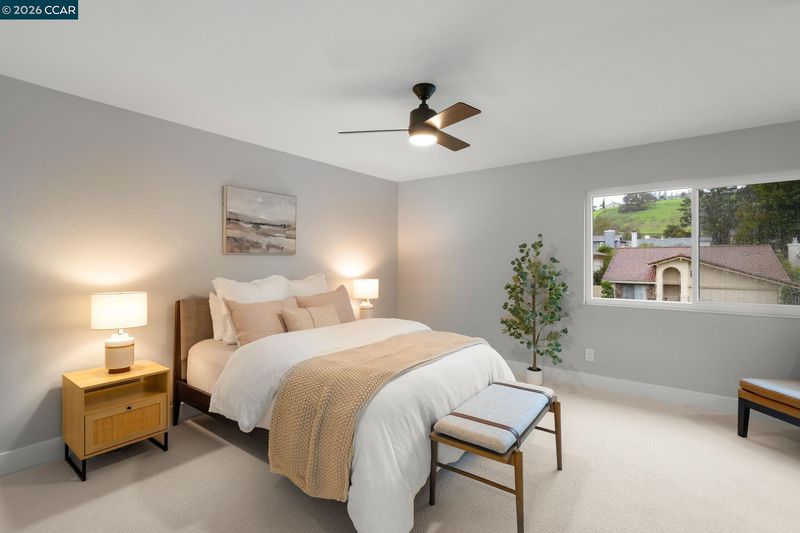 This beautifully renovated 4-bd,3-ba,1,972 sq ft home in the prestigious Twin Creek Hills enclave of San Ramon is thoughtfully updated&designed w/modern sophistication&comfort.This exceptional residence features a fully renovated chef’s kitchen,updated bathrooms,wide plank luxury flooring,dual pane windows,designer paint colors,new cabinetry&appliances,updated lighting,new HVAC&dual living spaces.The chef’s kitchen is the heart of the home,showcasing premium appliances, generous storage&contemporary designer finishes.The great room encompasses the living,dining &kitchen spaces highlighted by soaring vaulted ceilings&natural light.The inviting family room offers a wood-burning fireplace&built-in desk area.A main-level bedroom& full bath provide ideal flexibility for guests or private office.The primary suite is a true oasis w/ spa-inspired en suite featuring custom shower, soaking tub, dual-sink marble vanity&three closets.The backyard retreat includes manicured landscaping,citrus trees,spacious deck w/trellis