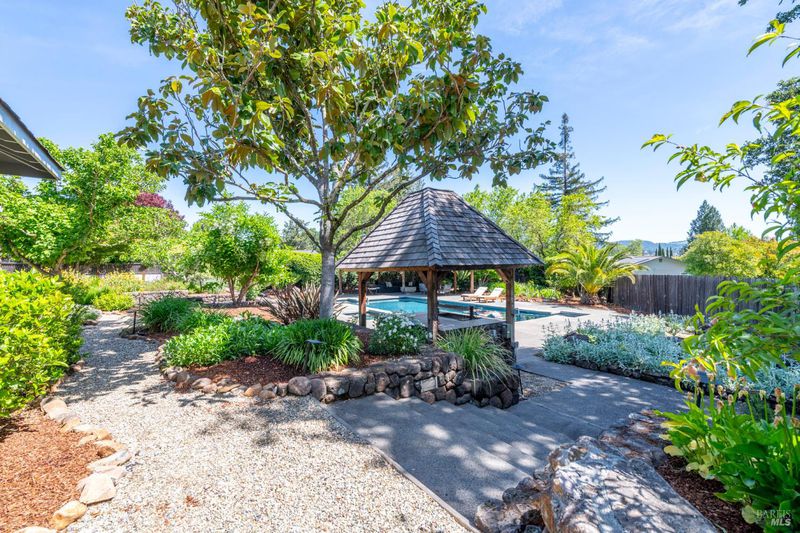 Welcome to 2501 Pinot Way in the heart of St. Helena, CA. This extensively renovated single-story contemporary home offers the ultimate in modern design and luxurious amenities, making it the epitome of Wine Country living. With 5 bedrooms and 3.5 baths, this 3,541 sq ft estate sits on a generous 24,293 sq ft lot offering the ultimate in privacy and tranquility. The brand new kitchen boasts upgraded appliances, perfect for the culinary enthusiast. Enjoy the expansive landscaped backyard on more than half an acre, complete with an oversized pool, spa, and a Tahitian style 3-roof cabana featuring a shaded seating area and fire pit. The primary bedroom suite offers a ensuite bathroom with a jetted tub and walk-in closet, while the formal entry leads to light-filled living spaces throughout. The U-shaped floor plan layout allows for direct access to the outdoor garden courtyard, creating a seamless indoor-outdoor flow providing ample room for entertainment and relaxation. The two gas fireplaces add warmth and ambiance to the modern interior. Experience the best of St. Helena living in this meticulously remodeled home. Conveniently located on a quiet cul-de-sac, this serene retreat is just a short walk to downtown St. Helena's charming shops and upscale restaurants and wine bars.
