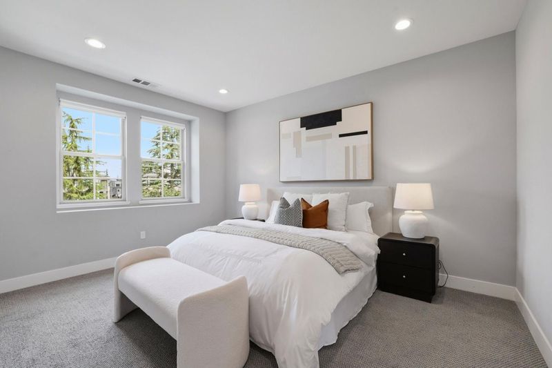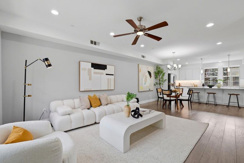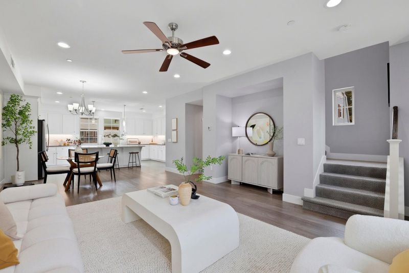 Welcome to this light-filled, meticulously maintained end-unit PUD townhome in Sunnyvales sought-after Classics at Lawrence Station - true townhome ownership (NOT a condo) with a low HOA that includes trash service and home insurance. Ideally positioned facing and backing onto open space for added privacy, this home offers 3 bedrooms plus a versatile ground-level bonus room perfect for an office/den, gym, or guest space. The airy main level features an open-concept great room and a gourmet kitchen with quartz countertops, a large island, gas range, stainless appliances, engineered hardwood floors, and builder-upgraded cabinetry. Comfort and convenience upgrades include two-zoned central heating & A/C, custom-made shades throughout, a whole-house water softener, and an upgraded LG washer/dryer, plus a side-by-side 2-car garage. Enjoy community amenities including a BBQ/picnic area and security cameras, and unbeatable Silicon Valley access - walk to Lawrence Caltrain and Costco, with easy connections to Hwy 101/237, downtown Sunnyvale, and major tech campuses.