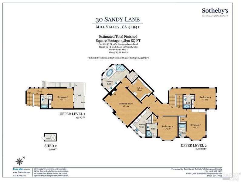 Tucked away in one of Mill Valley's most prestigious and sought-after enclaves, 30 Sandy Lane is a custom-built estate that offers an extraordinary blend of elegance, privacy, and natural beauty. Positioned on 1.28 acres of professionally landscaped grounds, this remarkable home enjoys sweeping panoramic views from nearly every room, captivating you in the serenity of the surrounding hills and curated gardens. Originally constructed in 2004 and lovingly cherished by the same family for over two decades, the estate spans approximately 5,830 square feet and reflects a legacy of quality craftsmanship and pride of ownership. From the moment you enter the grand foyer, you'll feel the grace and comfort of a home where countless memories have been made and where many more are waiting to unfold. The residence features five spacious en-suite bedrooms, a dedicated office that can easily serve as a sixth bedroom, and a half bath; this ideal floor plan creates a thoughtful layout that supports both everyday living and elegant entertaining. Soaring ceilings, custom wood flooring, crown molding, and high-end finishes throughout speak to the timeless design and character of the home. Picture-frame windows provide the interiors with natural light throughout the day, while framing the beauty of Mill Valley's hills and distant vistas. The seamless connection to the outdoors is constant and calming. Step outside to find a peaceful sanctuary of terraces, large level turf yard, multiple decks, and mature gardens, including your very own private vineyard. Whether hosting friends or enjoying a quiet morning at home surrounded by nature, every corner of this estate has been designed to cultivate meaningful moments. Other features include three gas fireplaces, central air conditioning, wine cellar and three-car garage with direct interior access plus generous off-street parking. Close proximity to top-rated public schools, downtown Mill Valley, world-class hiking and biking trails, and the Golden Gate Bridge to ensure a lifestyle of ease, access, and natural beauty. In addition, there are two locations for potential pool sites on the property, and the driveway can be gated. 30 Sandy Lane is more than just a home, it is a place of connection, heritage, and peace. A rare offering where elegance meets comfort, and where a truly special legacy can continue for generations to come.