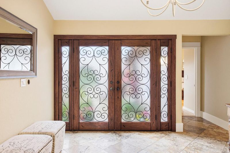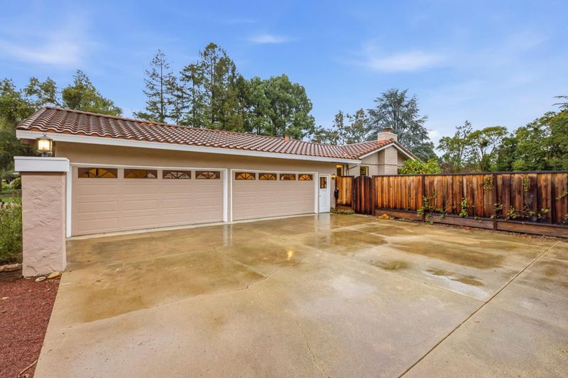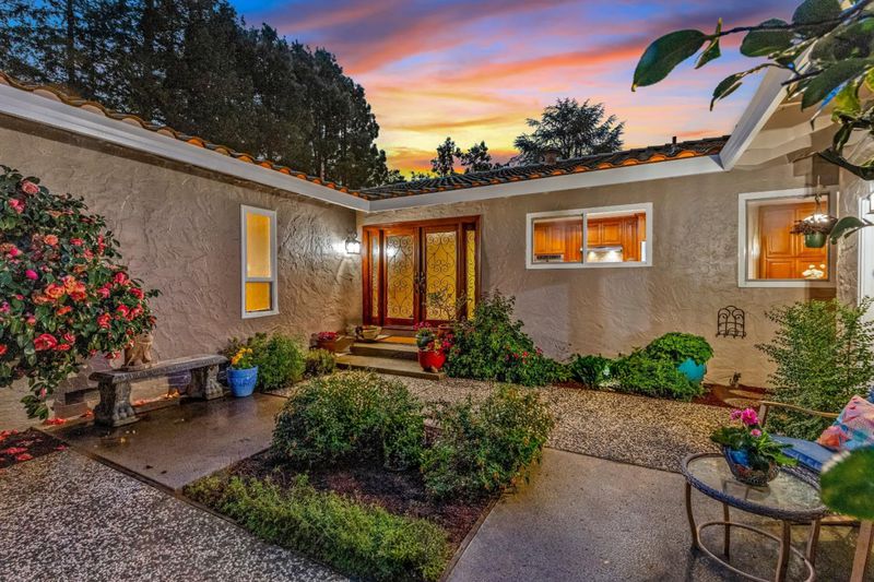 Welcome to coveted Amberwood Glen, known for expansive lots, city services, and a private network of walking and riding trails. This beautifully maintained single-level Spanish-style home offers 4 bedrooms and 3 full bathrooms on a nearly one-acre, 42,000 sq ft lot. Vaulted ceilings in the living room, family room, and primary suite create an open feel, while hardwood flooring and travertine tile run throughout. The remodeled kitchen features quartz countertops and newer stainless steel appliances. The fully renovated primary bath offers a spa-like retreat. Designed for indoor-outdoor living, the backyard showcases a Pebble Tec pool and built-in spa, expansive patio areas, covered pergola, built-in BBQ, and blooming crepe myrtles. The front yard features new landscaping and an olive tree-lined circular driveway leading to a charming courtyard entry with iron-inlaid doors. A newer tile roof and rare 4-car garage complete this exceptional offering in one of Morgan Hills most desirable neighborhoods.