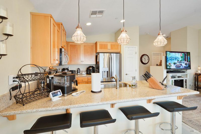 Welcome to Trilogy at Rio Vista, a premier 55+ active adult community known for its resort-style amenities and vibrant lifestyle. This well-maintained 2-bedroom, 2-bath home offers 1,172 square feet of thoughtfully designed single-level living. The main living area flows naturally, with the kitchen, dining, and living spaces connected in one open, inviting setting that feels bright and comfortable for both everyday living and entertaining. The spacious primary suite features a private en-suite bath, while the second bedroom is ideal for guests or a home office. Step outside to a beautifully landscaped backyard with covered sun protection, creating a shaded space to relax and enjoy the outdoors. The fully finished two-car garage adds extra functionality and polished appeal. The home also includes fully paid solar no lease and no monthly solar payments adding long-term energy savings. Residents enjoy golf, pools, fitness center, pickleball, tennis, shared dog park and an active clubhouse lifestyle.