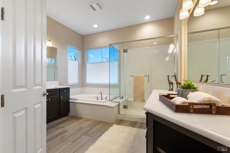 Beautiful Views from this Venza style home located on the 12th green. This home has 2 en-suite bedrooms, 2.5 baths, office/den, many upgrades including kitchen - upper glass cabinetry, granite counters, upgraded appliances including refrigerator, tile flooring throughout all high traffic areas, built-in media cabinet, covered patio, courtyard, 3 car tandem garage and more...As well as included solar until 2038.