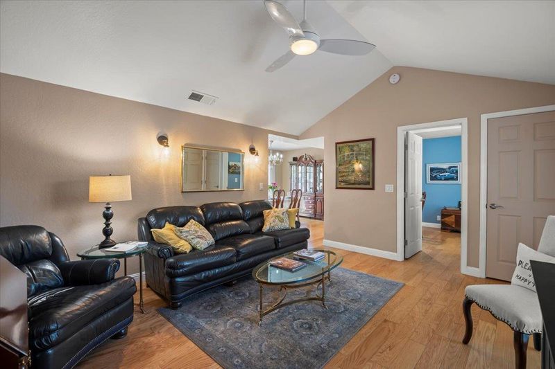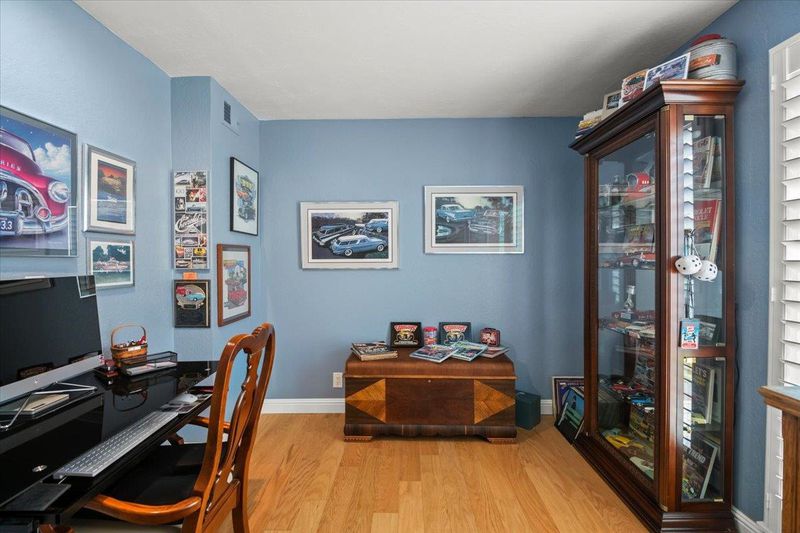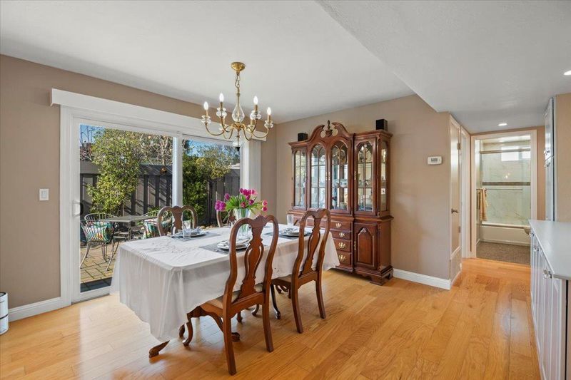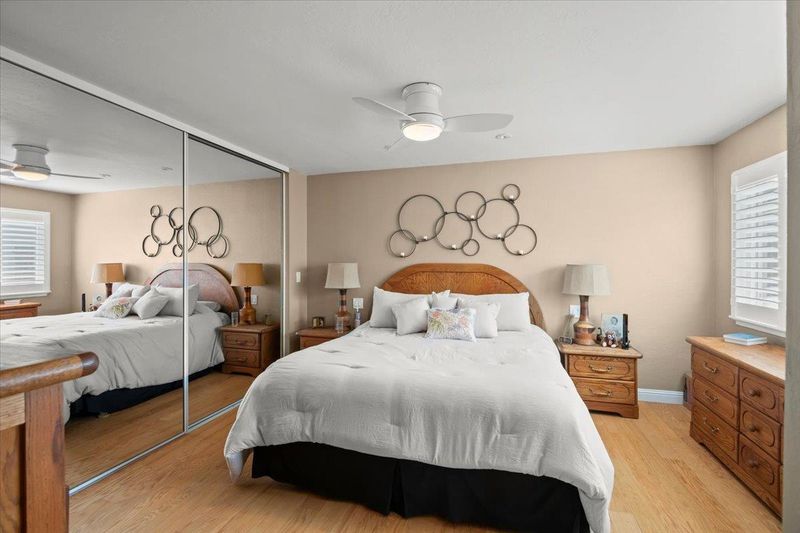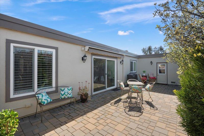 Superbly upgraded and meticulously maintained 3-bedroom, 2-bath single-story townhome. Remodeled kitchen with custom lighting, high-end white cabinets, quartz counters, and Bosch appliances. Custom lighting, hardwood flooring, and plantation shutters throughout. Beautifully remodeled bathrooms. Fenced front and backyards with pavers and lush landscaping. Retractable sunshade on the back patio. Finished two-car garage with heavy-duty shelving and a workbench. Only one shared wall, located in the garage, offers the privacy of a single-family home. Short walk to downtown Pleasanton and Farmers Market.