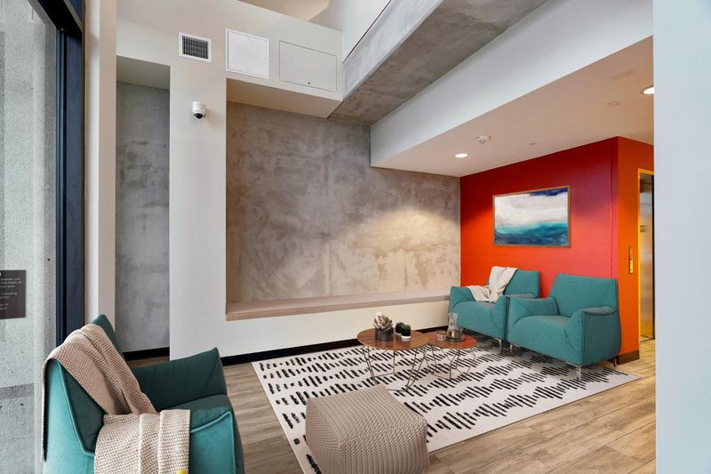 Park in the first-floor parking garage and enter the lobby. The sales office is in Unit 105. The office is closed Monday and Tuesday.