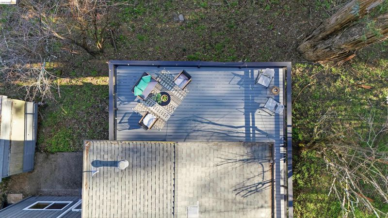 Tucked into the Oakland Hills on a rare double lot, this mid-century-style home offers a peaceful, nature-surrounded setting with the convenience of city access. The open-concept upper level connects the living room, dining area, and kitchen, filled with natural light and featuring hardwood floors, updated millwork and appliances, and energy-efficient windows throughout. A brick fireplace anchors the space, accented by a birch threshold for a refined, modern touch. Comfortable bedrooms offer great light and storage, while refreshed interior finishes and updated flooring on the lower level add move-in-ready appeal. Outdoor living shines with a wrap-around deck and expansive patio, ideal for entertaining, relaxing, and enjoying the surrounding trees and wildlife. The hillside landscape is dotted with native California plants. Located just minutes from Montclair Village, neighborhood parks, Highway 13, and key commuter routes, this home blends retreat-like privacy with everyday Oakland convenience.