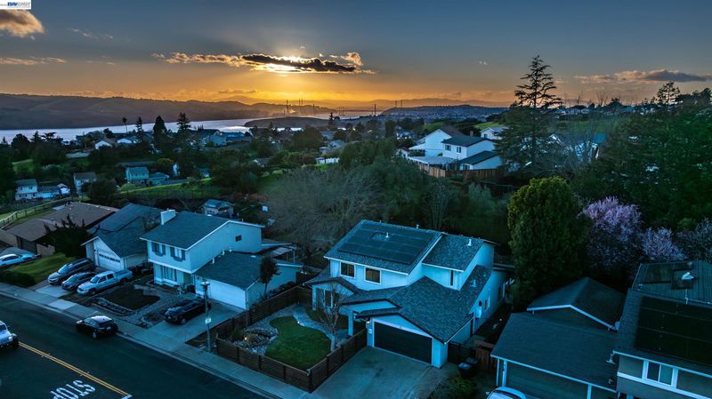 Welcome to this beautifully remodeled EAST-FACING 6BD/3.5BA home offering 2,485± sq ft on a 6,534 sq ft lot. Featuring two spacious primary suites—one downstairs and one upstairs—ideal for multigenerational living. Highlights include OWNED SOLAR, a brand-new roof, real hardwood floors, abundant natural light, and a gas fireplace. The updated kitchen boasts marble countertops, stainless steel appliances, and a gas cooktop, flowing seamlessly into the living and dining areas. The upstairs primary offers a walk-in closet and spa-inspired bath with heated floors, Carrara marble shower, and jetted tub. Upgraded baths throughout, whole-house water filtration, low-maintenance hardscape backyard, paver driveway, and gated front yard. Minutes to downtown Benicia waterfront, dining, parks, I-780, and the Benicia Bridge. Move-in ready in a highly desirable neighborhood.