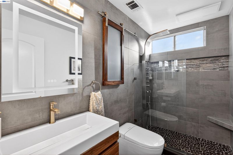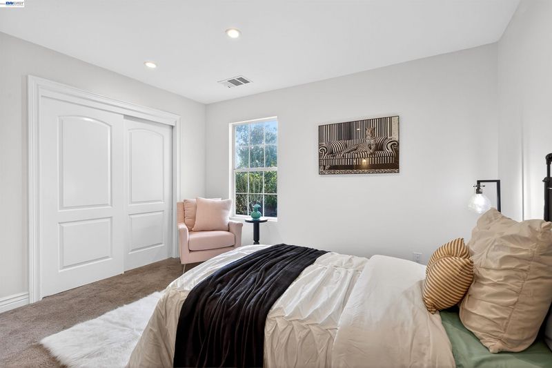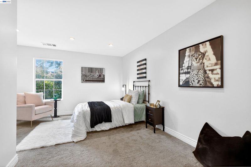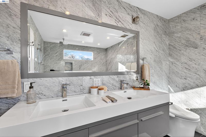 Welcome to this beautifully remodeled, EAST-FACING 6-bedroom, 3.5-bath home offering 2,485 sqft of thoughtfully designed living space. Highlights include an open-concept floor plan, two large primary bedrooms, OWNED SOLAR and a brand-new roof. One primary suite is located downstairs and another upstairs, providing an ideal layout for multigenerational living, extended family, or long-term guests. The upstairs primary features a walk-in closet and spa-inspired bathroom with heated tile floors, a Carrara marble walk-in shower with six spray heads and rainfall feature, and a two-person jetted Jacuzzi tub. Main living areas showcase real hardwood floors, abundant natural light, and a gas fireplace. The remodeled kitchen flows seamlessly into the living and dining areas and offers marble countertops, stainless steel appliances, and a gas cooktop. Bathrooms throughout the home have been updated with high-end finishes, modern tile work, and upgraded vanities. Additional improvements include a whole-house water purification and softening system. Enjoy a low-maintenance hardscape backyard perfect for entertaining or relaxing, paver driveway, and gated front yard for added curb appeal and privacy. A rare opportunity to own a truly move-in-ready home in Benicia!