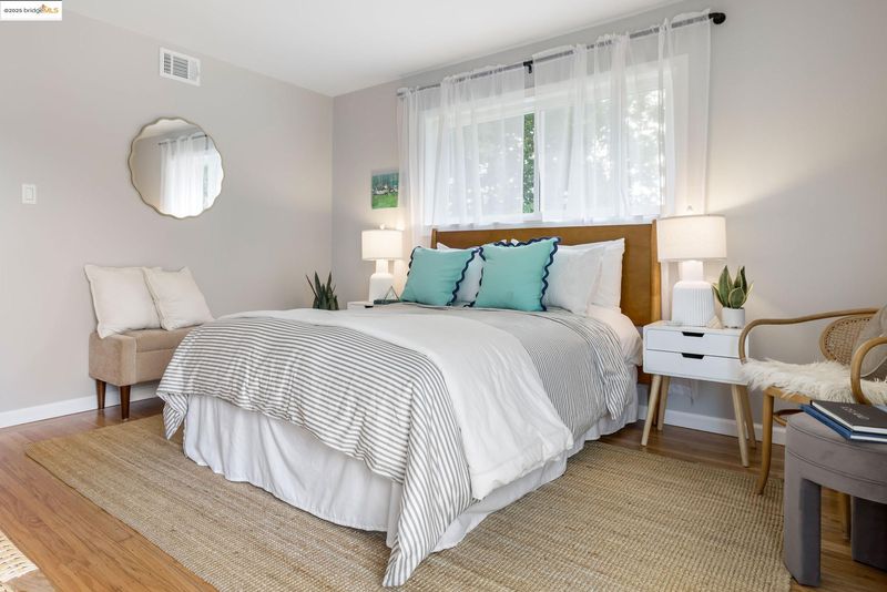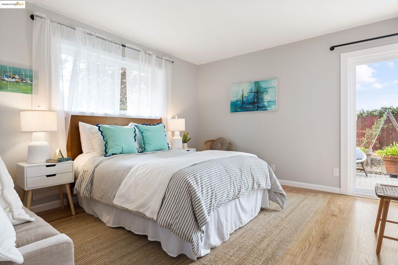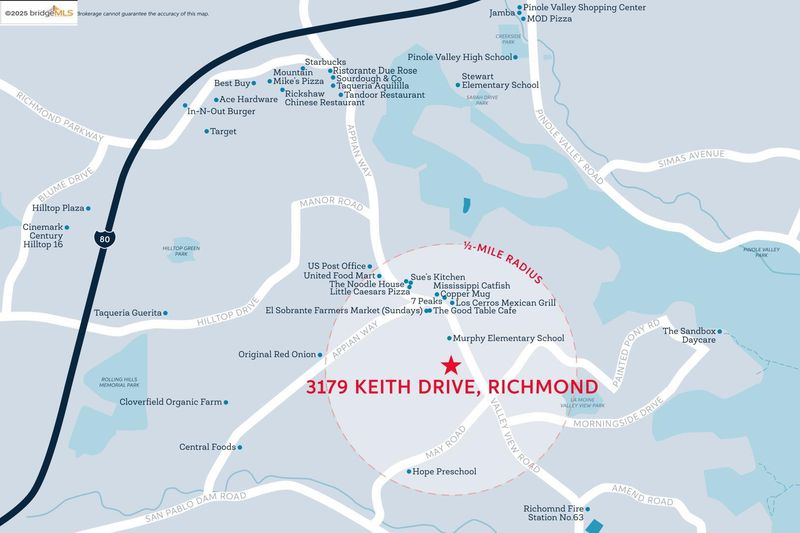 3179 Keith Drive is a charming ranch-style home with a newer roof (7/2025) nestled in Richmond’s highly sought-after May Valley neighborhood. This move-in ready 3-bedroom, 2-bath residence blends comfort, convenience, and character with thoughtful updates and inviting living spaces. Open the door to a bright living room with wood floors, dual-pane windows throughout, and a cozy fireplace. The living and kitchen areas capture beautiful views of rolling hills, filling the home with natural light. The primary suite feels like a private retreat, featuring a refreshed bathroom, separate vanity space, and sliding door that opens directly to the backyard. One of the other two bedrooms has been smartly designed for maximizing space with a built-in desk, bookshelves, and Murphy bed. The spacious backyard oasis offers multiple patios, several spaces for gardening, fruit trees, and even a Bocce court—ideal for entertaining or relaxing in your private setting. Additional highlights include a two-car garage, driveway parking, and low-maintenance landscaping and solar lights in the front yard. Living in Richmond’s May Valley neighborhood offers a unique blend of natural beauty and community warmth that residents appreciate. The area is surrounded by scenic hills, parks, and open space.