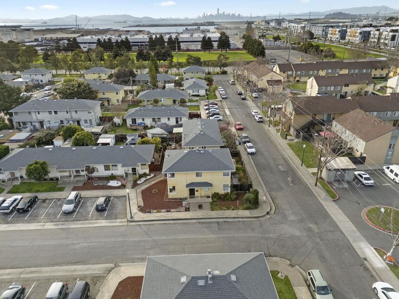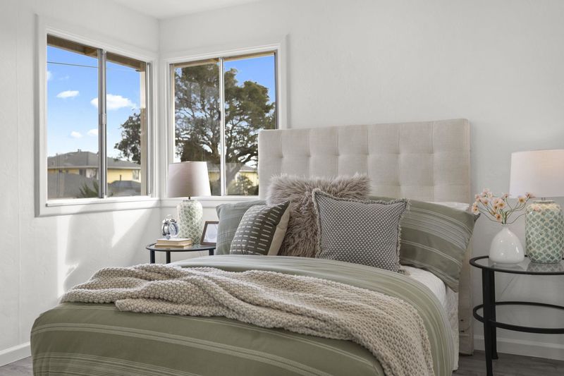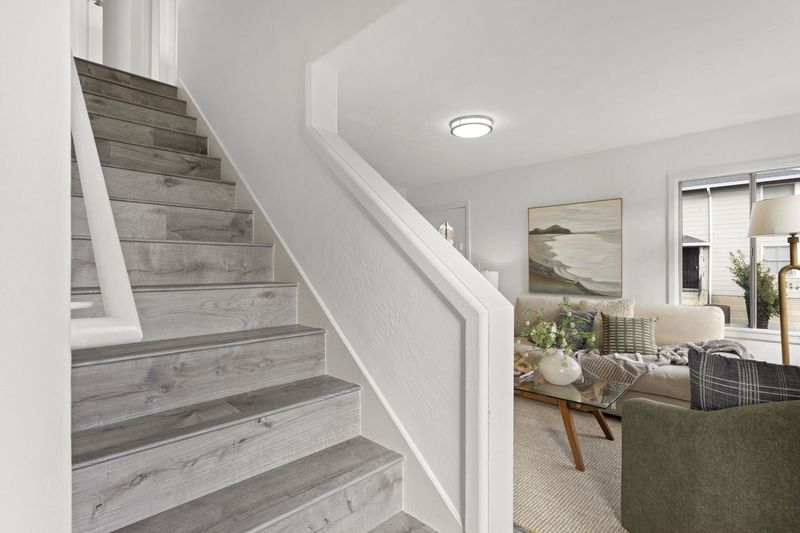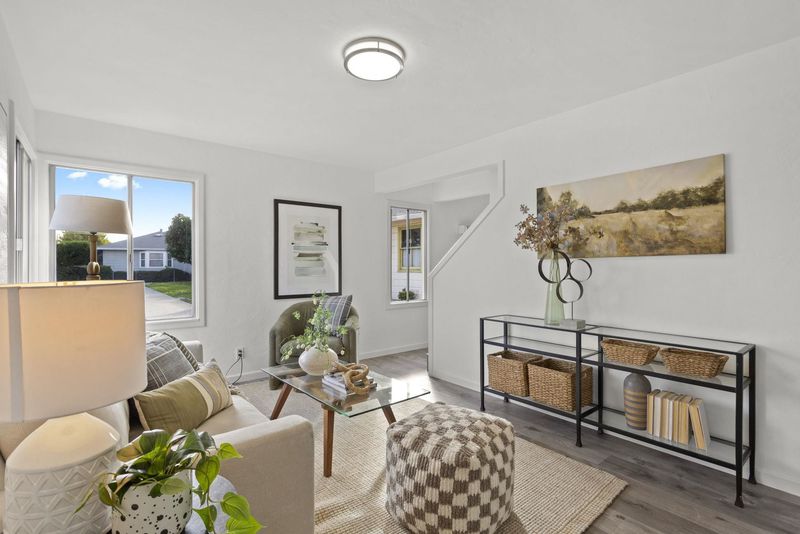Tucked into a desirable corner location within the Woodstock Co-Op of Alameda, this expanded two-story home offers a rare and thoughtfully enhanced floor plan. Unlike the standard layout, this residence includes a third bedroom and half bath on the main level, creating added flexibility for guests, a home office, or multi-generational living. The interior feels bright and refreshed with an updated kitchen that flows seamlessly into the living and dining areas. Luxury vinyl plank flooring runs throughout, complemented by fresh interior paint, updated electrical, a new water heater, and in-unit laundry. The corner positioning brings added privacy and natural light, enhancing the home’s open feel. Upstairs, two bedrooms and a full bath provide comfortable separation, while the additional main-level bedroom and half bath truly set this home apart. Conveniently located near Alameda Landing, Webster Street, Alameda Naval Base, and the SF Ferry buildings. Enjoy the plentiful of breweries, local gyms, Alameda's Antique Fair, and weekly farmers' market! A rare opportunity to own a uniquely expanded and move-in ready home in Woodstock.