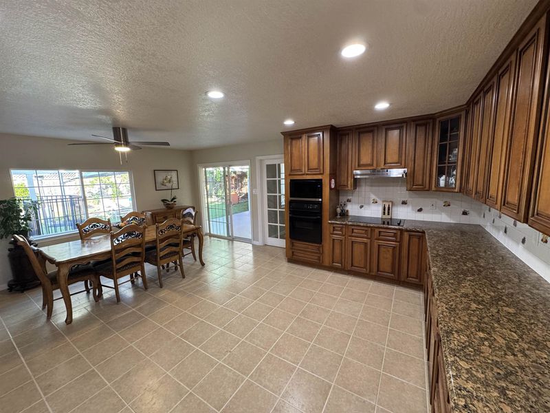Located in the heart of the highly sought-after Mission San Jose, this exceptional residence offers the rare convenience of walking distance to Chadbourne Elementary, Hopkins Junior High, and Mission San Jose High School. Set on an approximately 8,640 sq ft lot, this beautifully upgraded 5-bedroom, 3-bath home offers around 2,350 sq ft of thoughtfully designed living space. The flexible floor plan features two kitchens and is configured to support two distinct living ambiances with independent entrances, or a seamless single-residence layout with ADU-style potential. Side yard access adds versatility and convenience. Extensive improvements include tile flooring throughout, remodeled bathrooms, granite countertops, maple cabinetry, dual-pane windows, updated electrical, a newer roof, and dual-zone heating with Google Nest thermostats and Alexa integration. Designed as a true smart home, lighting and key systems are easily controlled throughout interior and exterior spaces. Outdoors, enjoy a serene and elegant backyard ideal for entertaining, featuring pet-friendly synthetic turf, a fenced swimming pool, solar lighting, refreshed outdoor living surfaces, and a calm, private atmosphere. A rare opportunity offering smart living in one of Fremont’s most desirable neighborhoods.