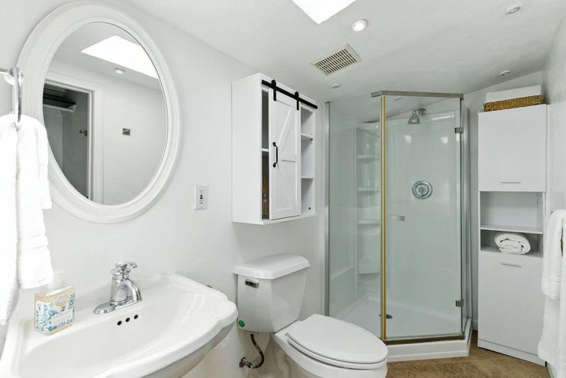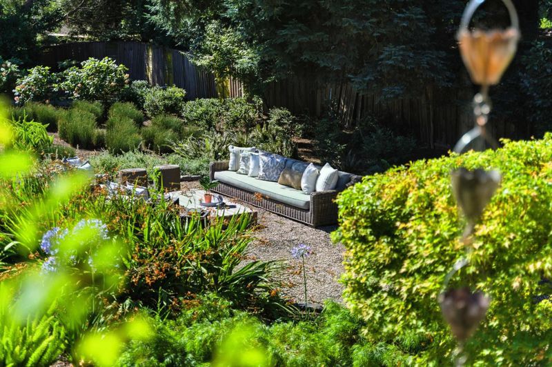 Hidden gem on nearly half an acre behind a private gated entry with professionally landscaped grounds, mature orchard trees, & year-round blooms. The exceptional single-level 3 bedroom, 3 bath 1,842 sqft main residence was completely renovated in 2017 & features an open, light-filled floor plan with skylights & French Oak floors throughout. The entry opens to a spacious living room with custom built-ins & designer lighting, flowing seamlessly into the chef's kitchen with a large center island, Thermador appliances, & dining area. Multiple glass doors open to a stunning 400+/-sq ft lanai, creating effortless indoor/outdoor living. The primary suite retreat with spa-like bath featuring Italian porcelain tile, mosaic marble floors, chandelier, & custom closet. Outdoor living spaces include multiple seating areas, an outdoor kitchen, & gas fire pit, ideal for entertaining year-round. A detached garage offers approx. 687 sqft of flexible space for guest suite or home office, plus an additional 600+/- sqft basement. Additional features include a private well & potential to add an ADU or expand further. Ideally located moments from Village shops & restaurants, hiking & biking trails, Edgewood Park, Stanford University, major tech campuses, & Interstate 280. Excellent Woodside schools.