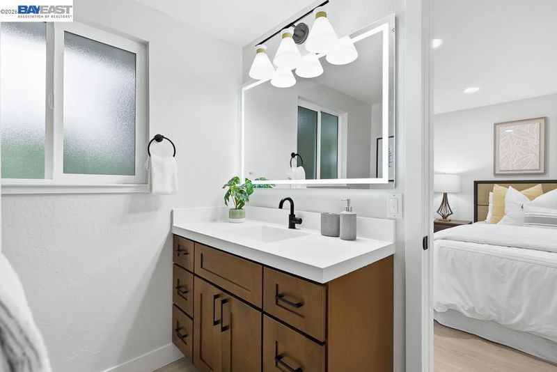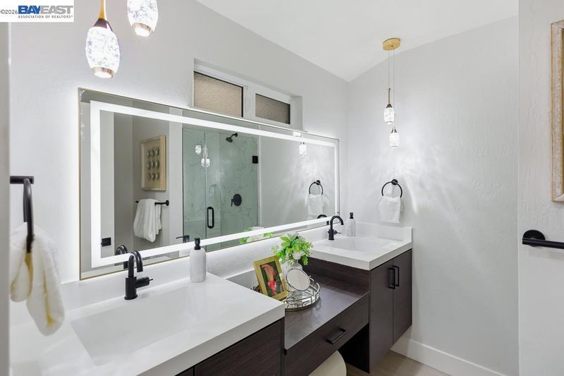 Discover this beautifully renovated, East-facing masterpiece featuring 5 bedrooms, 3.5 baths, and 2,605 sq. ft. of modern luxury. Tucked at the end of a quiet court in the highly-rated San Ramon Valley Unified School District, this home has been thoughtfully transformed with high-end finishes, including luxury vinyl plank flooring, new windows, and designer LED lighting throughout. The brand-new chef’s kitchen shines with quartz countertops, custom tile backsplashes, and premium appliances. The versatile floor plan is a rare find: the main wing hosts four bedrooms, including a primary suite, while a second, private primary suite sits on the opposite wing—complete with its own living area, refrigerator, and cabinetry—offering a turnkey junior ADU opportunity (plans available). Outside, the revitalized grounds feature a modern patio, artificial turf, and fresh exterior paint for lasting curb appeal. Perfectly located near top-tier schools, the new City Center, and easy freeway access, this property perfectly combines modern elegance with multi-generational flexibility.