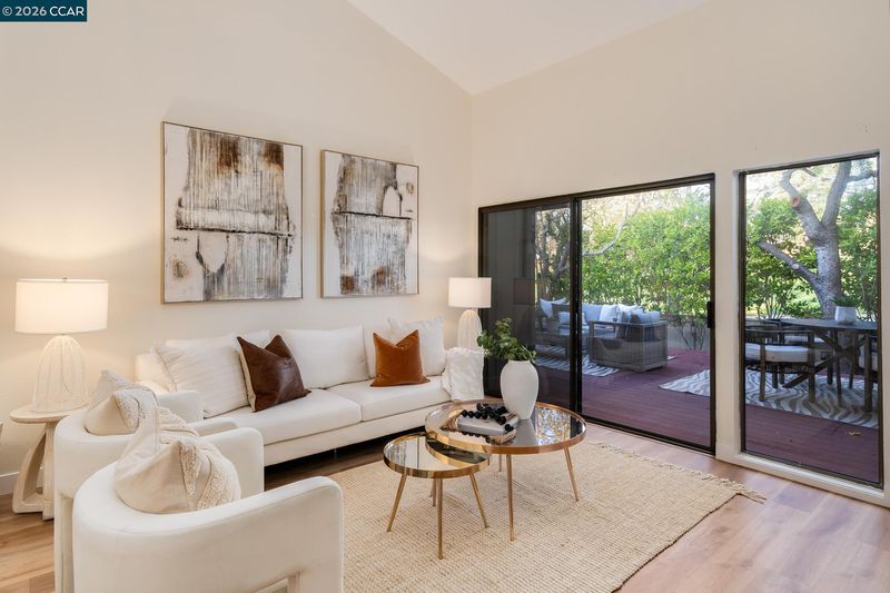 Beautifully updated 3 bedroom, 2 bath townhome in the highly sought-after, gated Crow Canyon Country Club community. Ideally located on the 9th fairway, this comfortable, tasteful residence features luxury vinyl plank flooring throughout & a stylishly updated kitchen with stainless steel appliances, modern cabinetry, & a skylight that fills the space with natural light. The spacious living and dining area, with high ceilings, opens to an expansive wooden deck overlooking the lush fairway, perfect for relaxing or entertaining. The serene primary suite offers mirrored closets, abundant storage & sliding door access to the deck for easy indoor-outdoor living. A versatile 3rd bedroom works beautifully as an office or guest room, while the private atrium adds an airy, tranquil touch. A charming walkway lined with plant beds leads to the inviting front entry. Enjoy the comfort and security of this well-maintained community with 24-hour gated access and close proximity to downtown Danville’s shopping, dining, and top-rated schools.