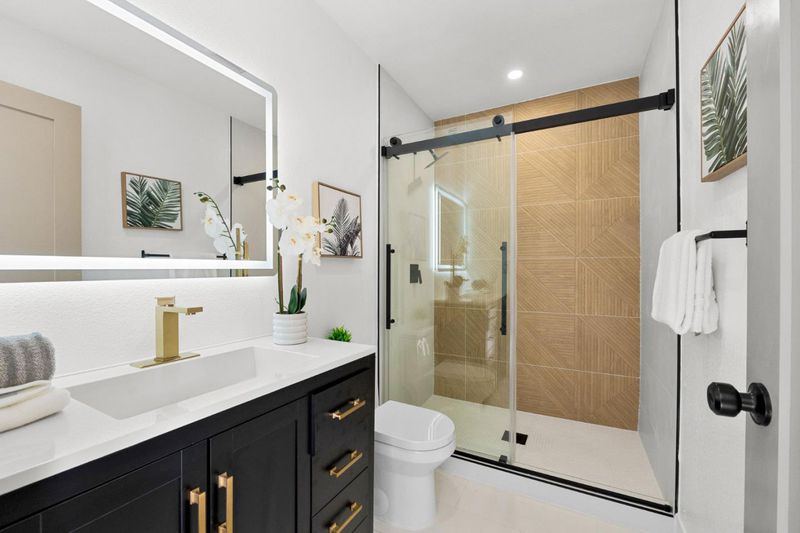 Welcome home to this modern contemporary, beautifully renovated 4-bed, 2-bath residence in the highly desirable Evergreen area of San Jose. Thoughtfully updated with a sleek, modern aesthetic, this move-in-ready home features a brand-new kitchen with contemporary cabinetry, quartz countertops and backsplash, LG stainless steel appliances, and a wine fridge and bar. Both bathrooms are fully remodeled with new tile, vanities, fixtures, and LED mirrors. The spacious bedrooms include walk-in closets for excellent storage and convenience. Additional upgrades include new laminate flooring, fresh interior and exterior paint, new doors and hardware, recessed lighting, double-pane patio doors, smart doorbell and thermostat, new A/C condenser and coil, smart garage opener, and refreshed landscaping. All major renovation work was completed with permits and final city approval. Situated on a 6,600 sq ft lot with 1,392 sq ft of living space, this home offers comfort, style, and peace of mind in a fantastic Evergreen location served by top-rated schools. Convenient access to Hwy 101 and close to Costco, shops, restaurants, parks, and daily amenities. A true Evergreen gem!