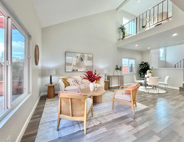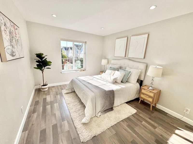 Rarely available beautifully updated single-family in highly sought-after Ardenwood community. Built in 1988, this thoughtfully designed 4BD/2.5BA end-unit offers a larger lot and no shared walls for added privacy. Bright living room with soaring vaulted ceiling and great natural lights. Open-concept kitchen features quartz countertops,soft-close cabinetry, quality appliances, and abundant storage, flowing seamlessly into the dining area and backyard. Spacious primary bedroom with vaulted ceiling overlooks the customized "Rose Garden". Primary bath includes double-sink floating vanity, luxuary soaking tub, and separate shower. Step outside to your own curated backyard oasisa customized "Rose Garden" with an irrigation system, water fountain feature, flower beds, and solar lighting. With a wide variety of roses throughout the yard, this space is perfect for relaxation. Updated flooring, dual-pane windows/doors, newer garage door, newer water heater, and RO water filter. Side-by-side 2-car garage with driveway parking and ample guest parking.Top-rated schools with TEST SCORE 10 (buyer to verify): Forest Park Elementary, Thornton Middle, American High. Minutes to Ardenwood Historic Farm, Hwy 84 (Dumbarton Bridge), and I-880. Easy commute to major companies-Meta/Google/Tesla/Lucid!