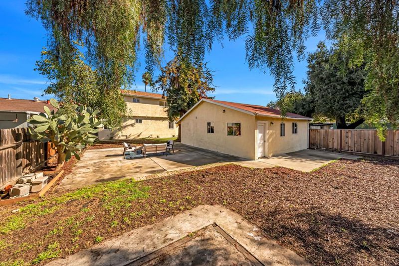 WOW! Turn-key single-family home on an expansive, flat deep lot in San Jose where land holds exceptional long term value. Properties w/ this much usable outdoor space are rare in Silicon Valley, offering excellent potential to expand, enhance, or ADU, ideal for both homeowners and investors. Charming curb appeal welcomes you w/ a private white fence, inviting front porch, and a long driveway accommodating 1 - 2 cars or extending to the detached garage. The main home features 4 spacious bedrooms and 2 remodeled bathrooms, including one full bath on each level. Interior highlights include double-pane windows, modern light fixtures, and an upgraded kitchen w/ white cabinetry, stainless steel appliances, quartz countertops with full backsplash and a cozy breakfast nook. Bedrooms offer generous closet space and comfortable living areas. The detached garage provides additional storage and includes two bonus rooms ideal for a studio, gym, office, or creative space. The expansive backyard offers endless possibilities for gardening, entertaining, future expansion, or potential development. Conveniently located near shopping, dining, major commute routes, and high-tech companies, this property presents a rare opportunity to own a versatile home in the heart of Silicon Valley. Welcome Home!