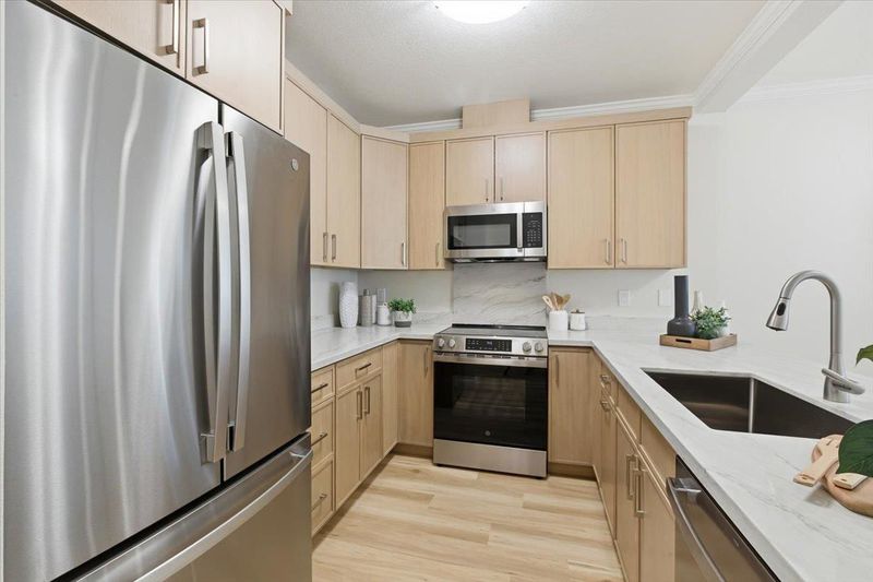 - Countertop - Quartz, Dishwasher, Garbage Disposal, Microwave, Oven - Electric, Refrigerator
