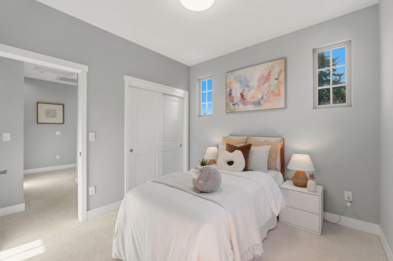 Location, location, location! Welcome to this stunning, like-new quiet corner-unit townhome in Sunnyvales desirable Lawrence Station community. Meticulously cared for, this home features an east-facing entrance and is just a short walk to Lawrence Caltrain, offering effortless access to Silicon Valley and the greater Bay Area. This true townhome features LOW HOA dues (including trash), smart-home upgrades, and dual-zone heating and A/C. The ground level includes a private bedroom and full bathroom, ideal for a home office, gym, or guest space. The main level showcases a bright open-concept design with a gourmet kitchen featuring a massive island, breakfast bar seating, and a spacious pantry. A built-in desk creates a perfect work-from-home nook. Upstairs, the oversized owners suite offers dual sinks, a walk-in shower, and a large upgraded walk-in closet. Two additional bedrooms, an upper-level full bathroom, convenient laundry, and a side-by-side two-car garage complete the home. Community amenities include a BBQ area and security cameras. Ideally located near Downtown Sunnyvale, major tech campuses, parks, and playgrounds. Don't miss this exceptional opportunity!