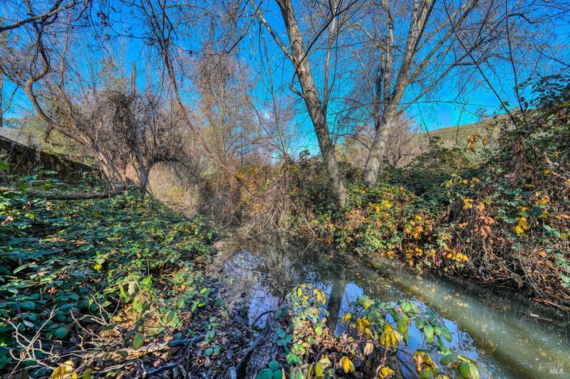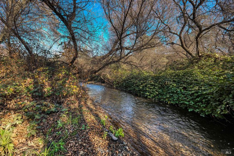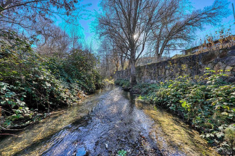 The uniqueness of this 2100+ sq ft home is unmatched--a contemporary farmhouse with weathered stone walls that backs-up to a year-round creek and lush woods. Everyone will put down their gadgets and go outside to play! First floor features: An open living/dining/kitchen floor plan, 2 bedrooms, 2 baths + a study. Second floor: Full-floor primary bedroom with en suite bath and space for a nursery, an office, dressing or TV room. Balcony overlooks back yard and hillside. The outdoor dining and play areas include: a deck, a patio, front and back yards with garden beds awaiting your personal touch. Generous closets and storage throughout. The one-of-a-kind stone wall along the back perimeter gives old farmhouse/vineyard vibes; it sets the tone for this rustic landscape perfect for long farmhouse table dinner parties. Extra 18' X 13' workshop/ studio/ home gym open to the patio and covered carport. Ample parking: a 23 ft-deep two-car garage and an enclosed and gated private driveway for 2+ more vehicles, RV, boat (or basketball hoop.) The privacy and security of this property is unmatched; enclosed by rustic stone walls, fencing, and gates for piece of mind as your dogs play outside. Light bathroom updates and a kitchen refresh could make this a multi-generational forever country home you'll be proud of. Full inspections performed in Dec. Visiting this property will set it apart from all the rest!