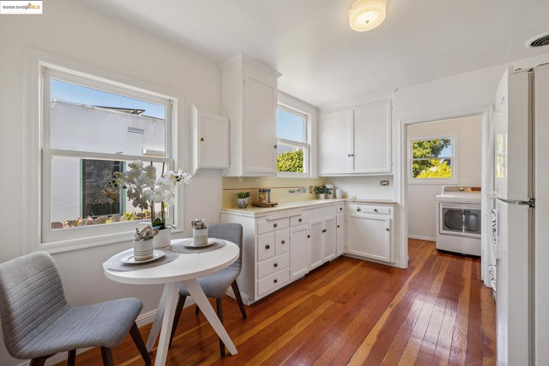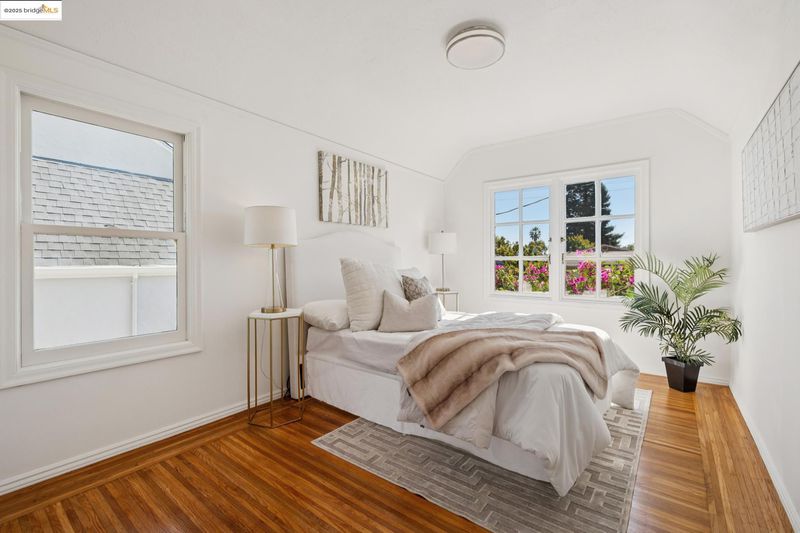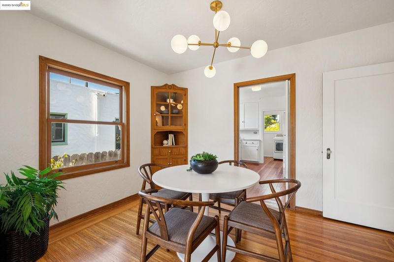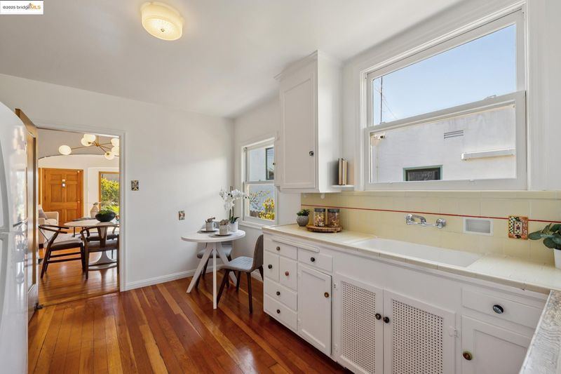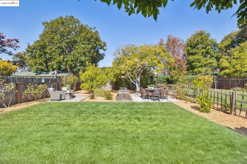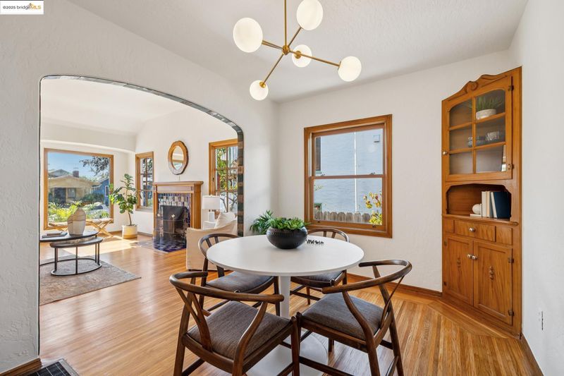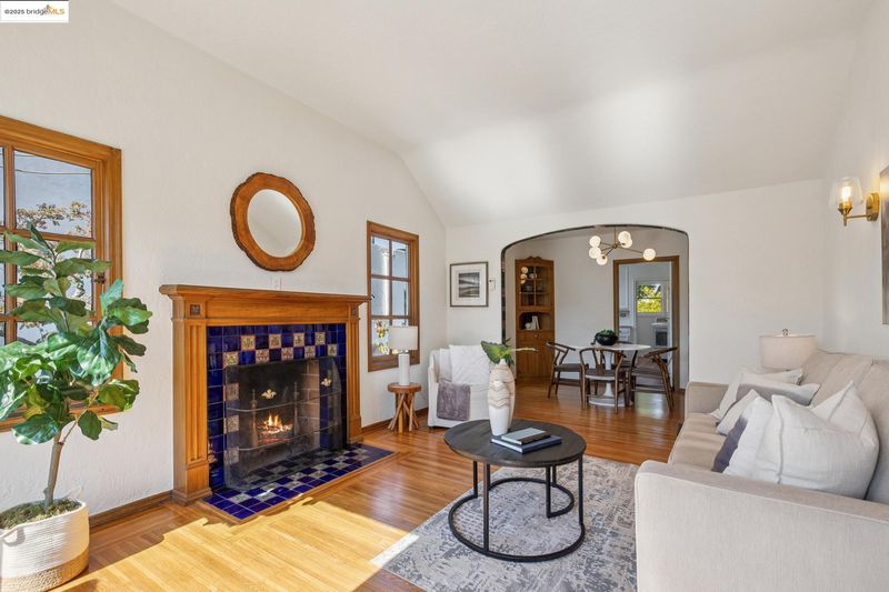 Welcome to 1421 Blake St, a charming 2-Bd, 1-Ba split-level home in the vibrant heart of Berkeley. This charming residence blends classic character with modern comfort, offering 968 sq/ft. of well-designed living space on a 4,550 Lot sq/ft full of potential & possibilities. Step into the sunlit living room, where half-vaulted ceilings & a stunning fireplace with custom tile, mirroring the archway detail, serves as the focal point. Rich hardwood floors, classic wood trim, colonial grid windows, elegant sconces creates a warm & sophisticated ambiance. The formal dining room features timeless built-ins, classic wood trim & stylish gold chandelier. A classic California retro kitchen blends timeless design with a clever built-in ‘California Cooler', natural stack-effect cooling cabinets, and the iconic O’Keefe & Merritt gas stove. Spacious bedrooms, in-home laundry room & attached garage. The newly landscaped front yard, while the serene backyard boasts a lush lawn, apple & citrus trees, & garden beds perfect for gardening, gatherings or a future potential ADU or home extension. Bike Score of 99, just minutes from Ashby & Downtown Berkeley BART, UC Berkeley, & the Bay Bridge, easy access to I-580, I-80 & I-880. Surrounded by culture, dining & arts, it’s Bay Area living at it's best!